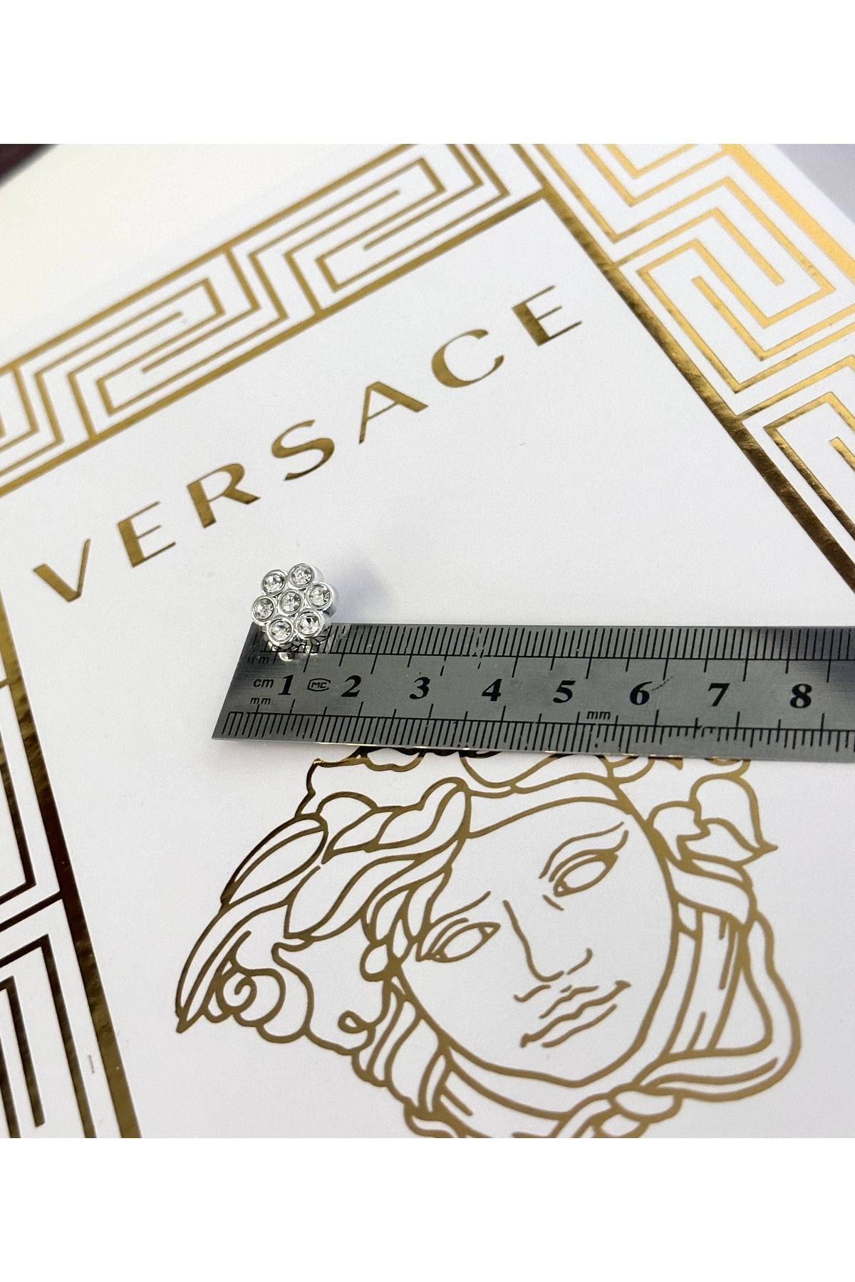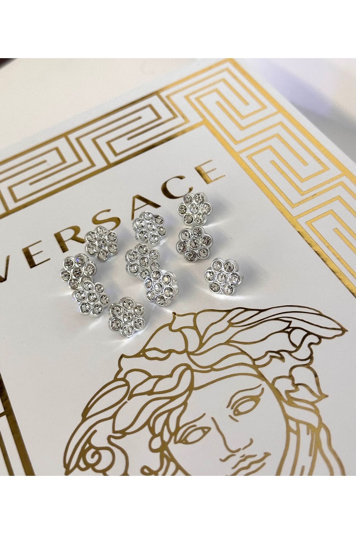 Çicek desen kristal taşlı metalize gömlek düğmesi
