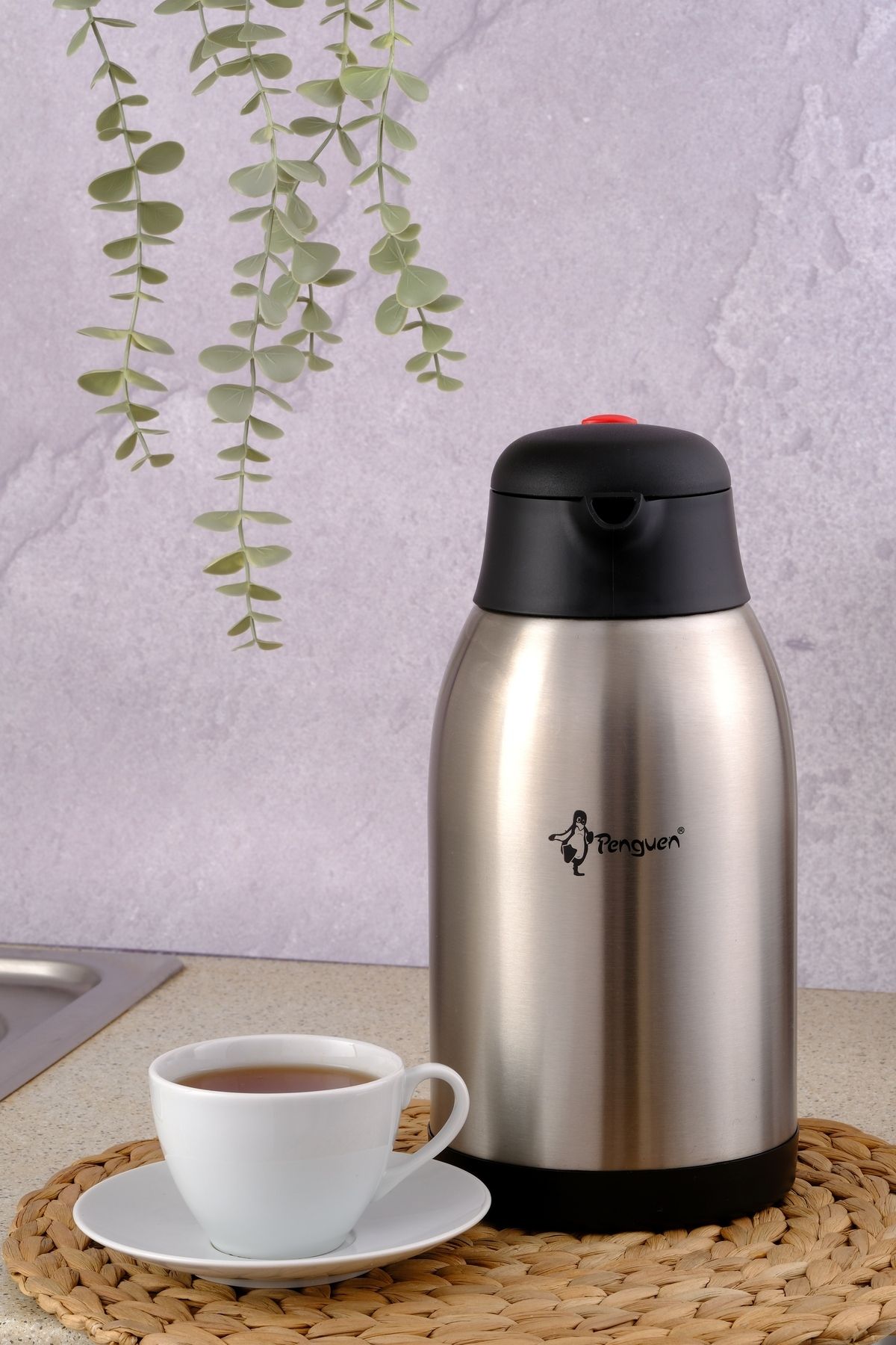 Penguen PNG-1250 Inox 2.5 Litre Çift Kat Çelik Çay Termos - İç ve dış yapışı kırılmaz- Paslanmaz çelik gövde kırılmaz el yakmayan plastik kulp ve kapak geniş ağzı sayesinde kolay temizlenebilme , 6-12 saat sıcak / 12-24 saat soğuk tutma özelliği - Vakumlu izolasyon pratik kapağı ve çift katmanlı gövde yapısı sayesinde sıcak veya soğuk tüm içeceklerinizi uzun süre muhafaza eder - Elde yıkanmalıdır.