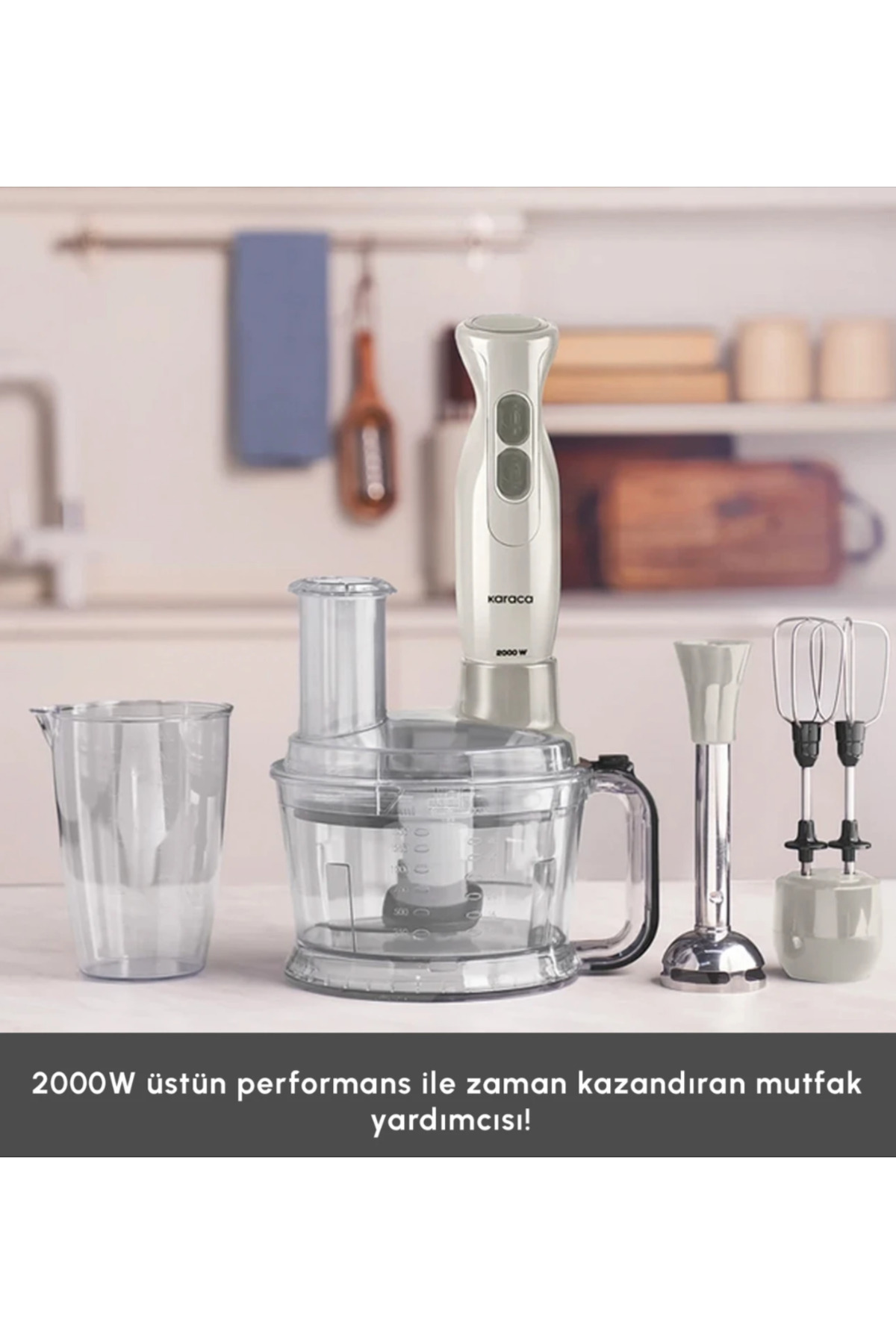 2000W yenilenmiş yüksek performanslı güçlü motoru sayesinde saniyeler içerisinde doğrama, çırpma ve parçalama işlemlerini gerçekleştirir.