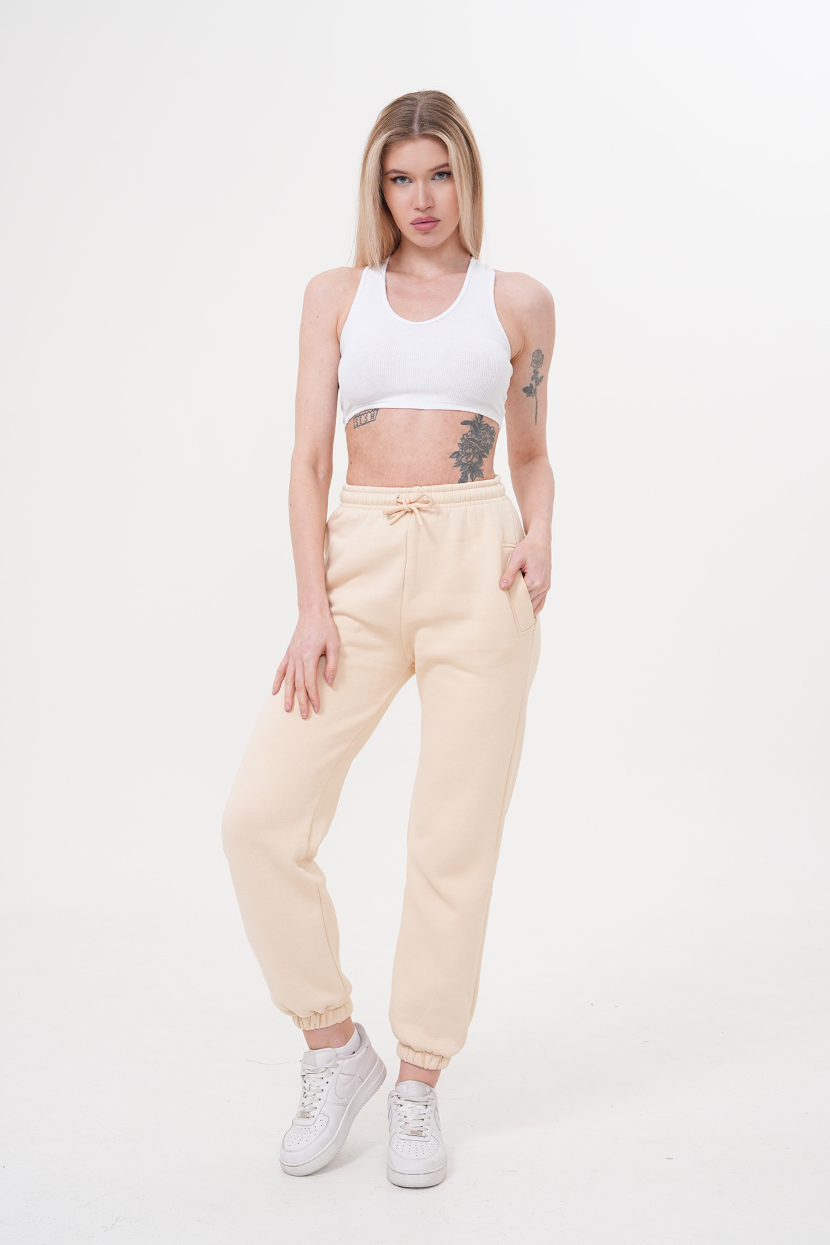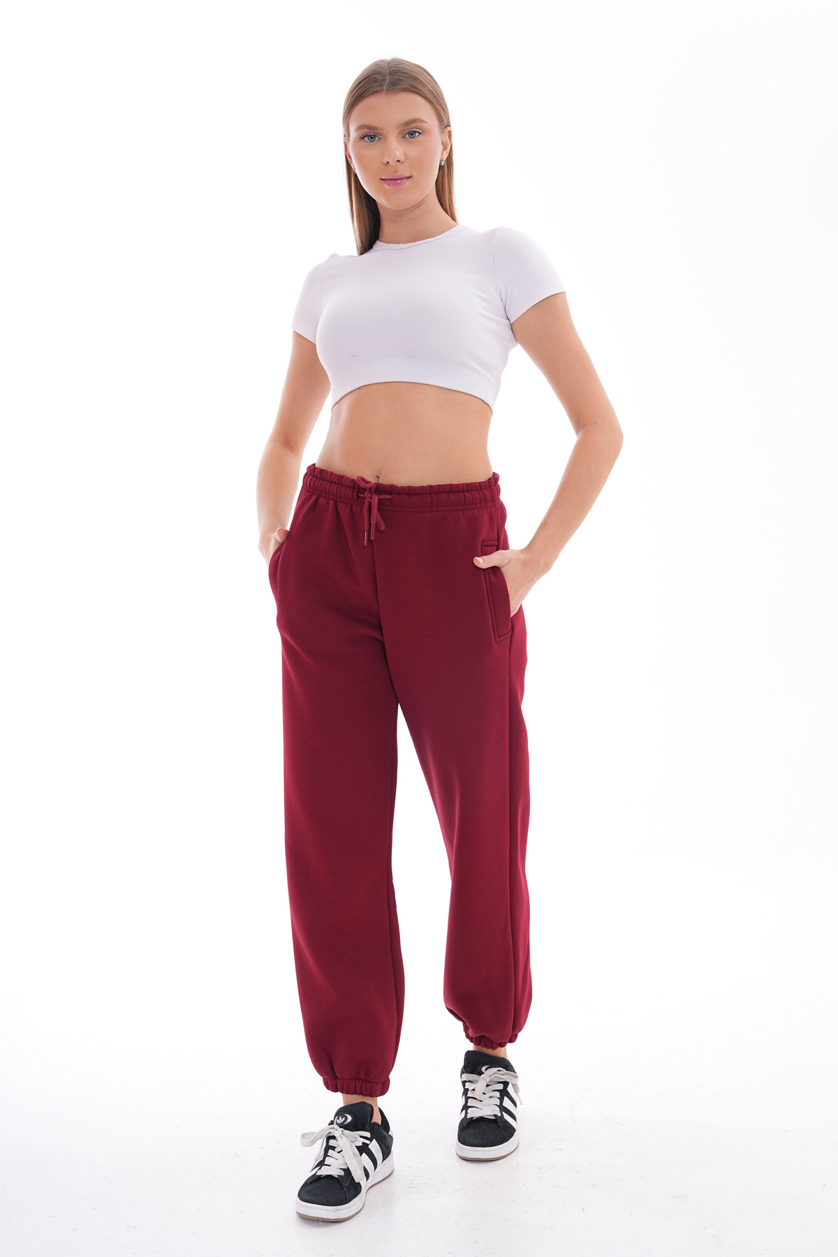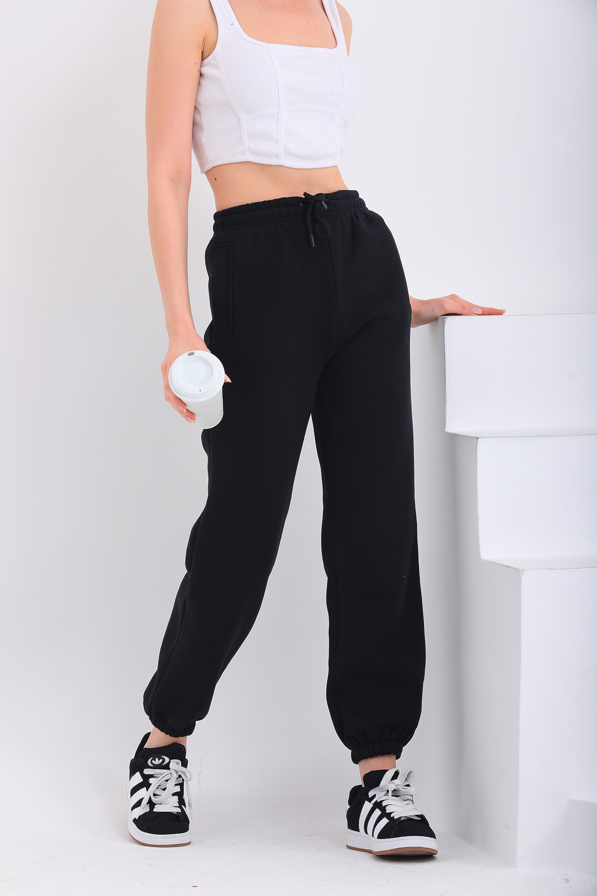 Basic koleksiyonun sadeliğini yansıtan bu eşofman altının düz deseni, kolayca kombinlenebilirliği arttırır.