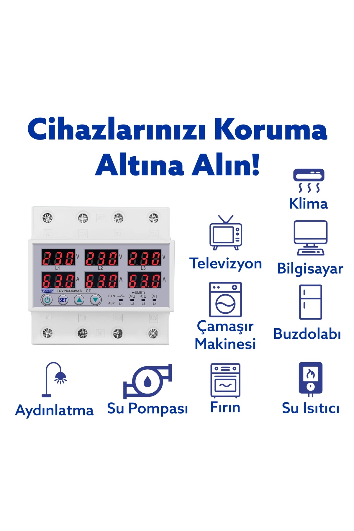 TOMZN Trifaz Gerilim Ve Akım Koruma Rölesi 220-230 V Yüksek Alçak Voltaj Akım Koruma 63 Amper 3 Fazlı Gerilim Koruyucu Röle - Ev Tipi Mikro çip temellidir.