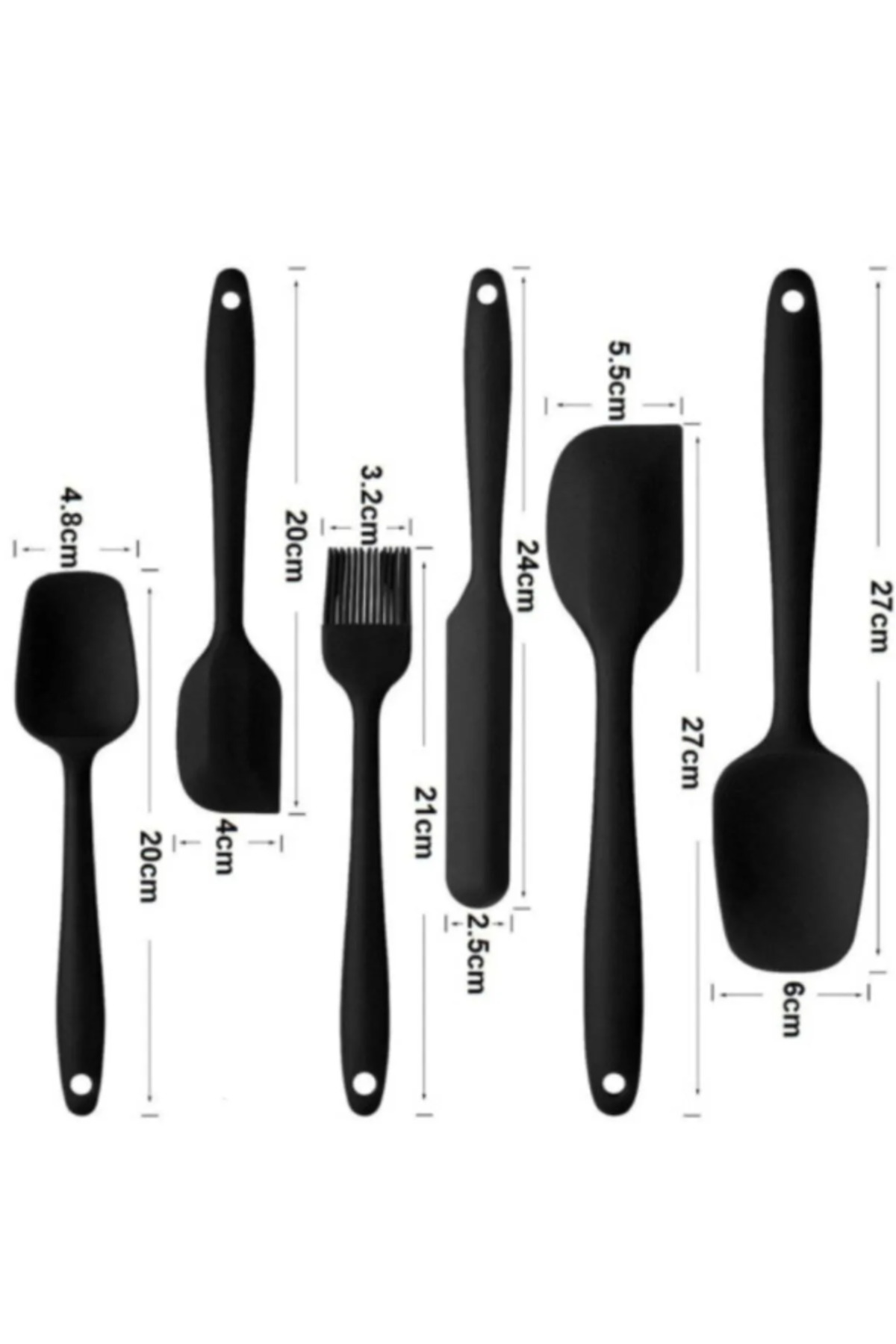 Isıya Dayanıklı Yanmaz Yapışmaz Silikon Spatula Seti 6 Parça Siyah
