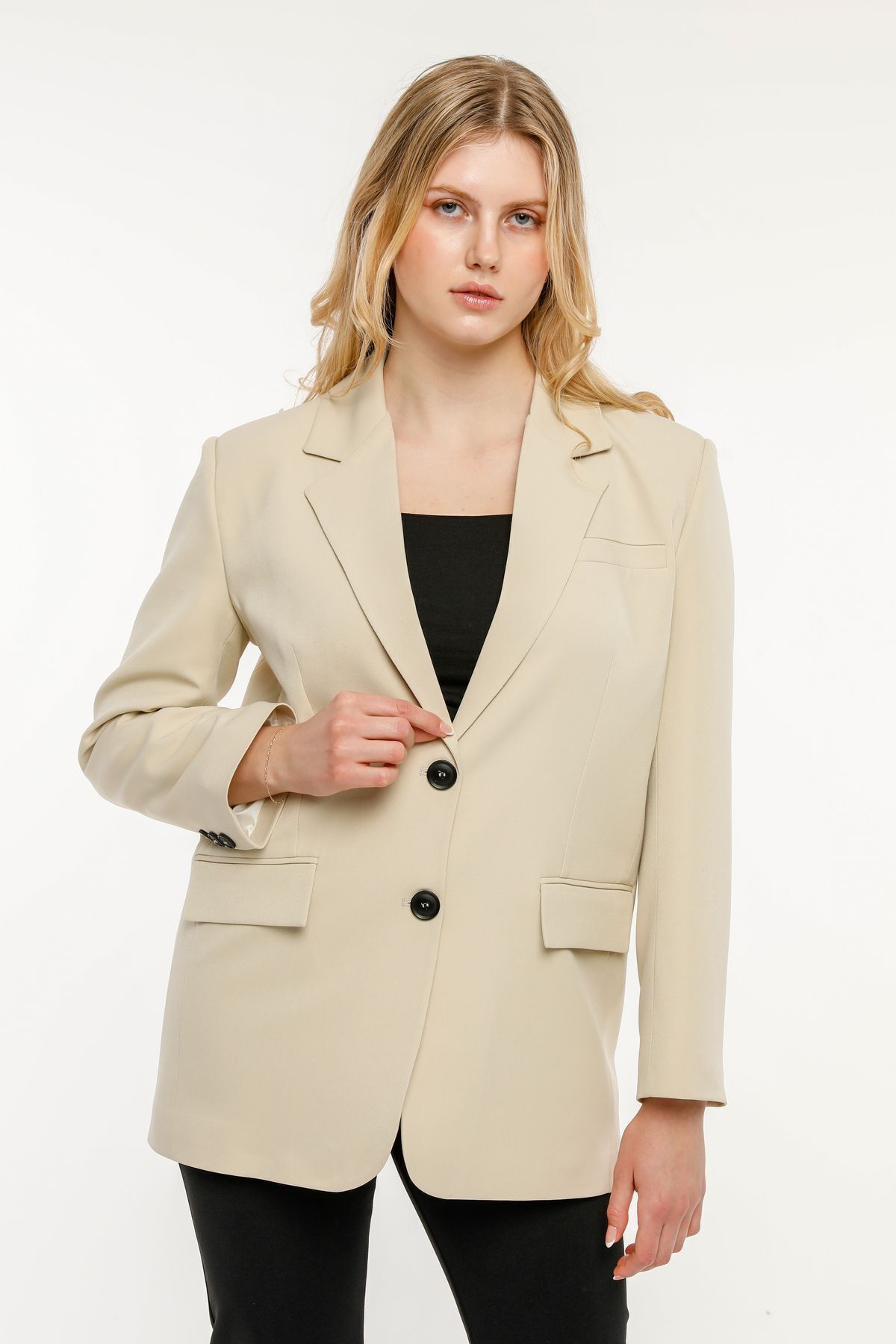 Kadın Blazer Ceket, Astarlı, Kol Süs Düğmeli, Düğme Kapama, Omuz Vatkalı, Kruvaze Yaka Ceket Ürünümüz Rahat kalıptır.