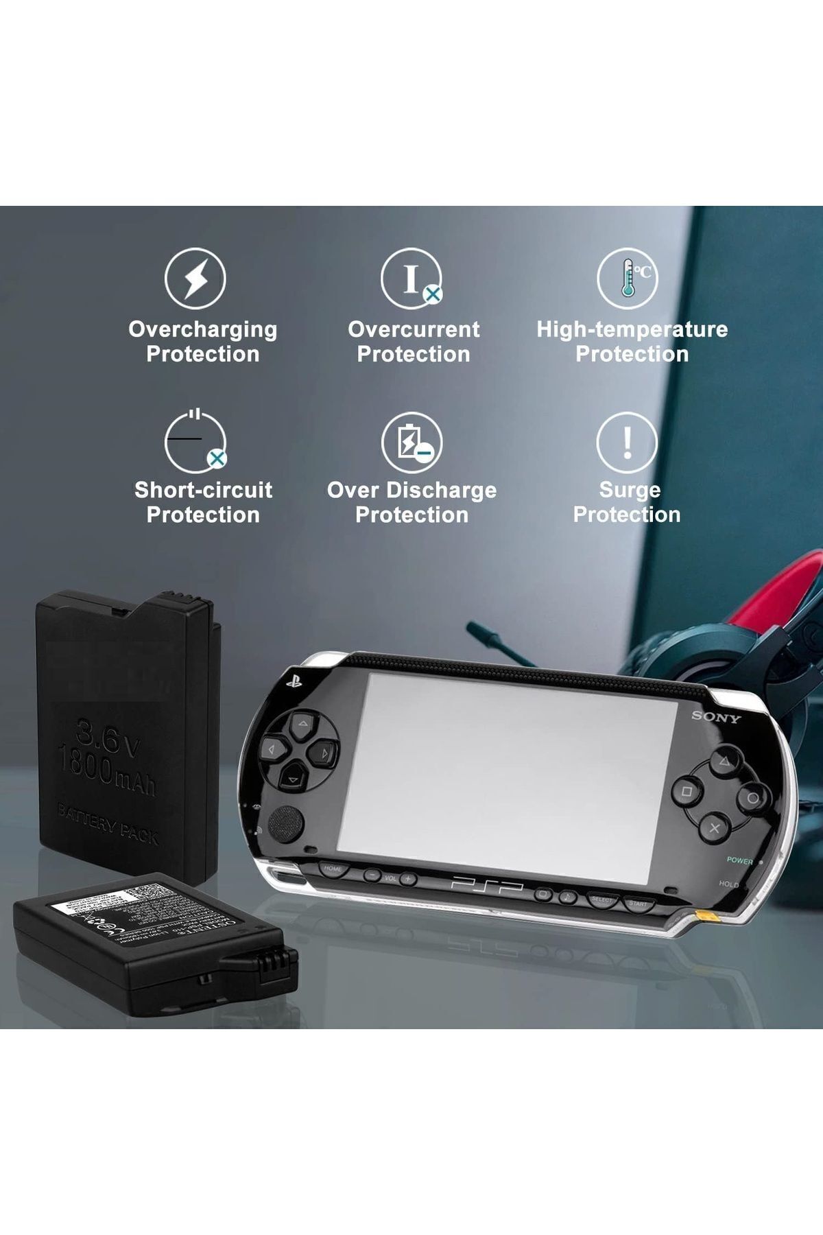- Sony PSP 100X, 110 ve 1000 serisi ile tam uyumlu, yüksek kapasiteli 3.6 V 1800 mAh batarya