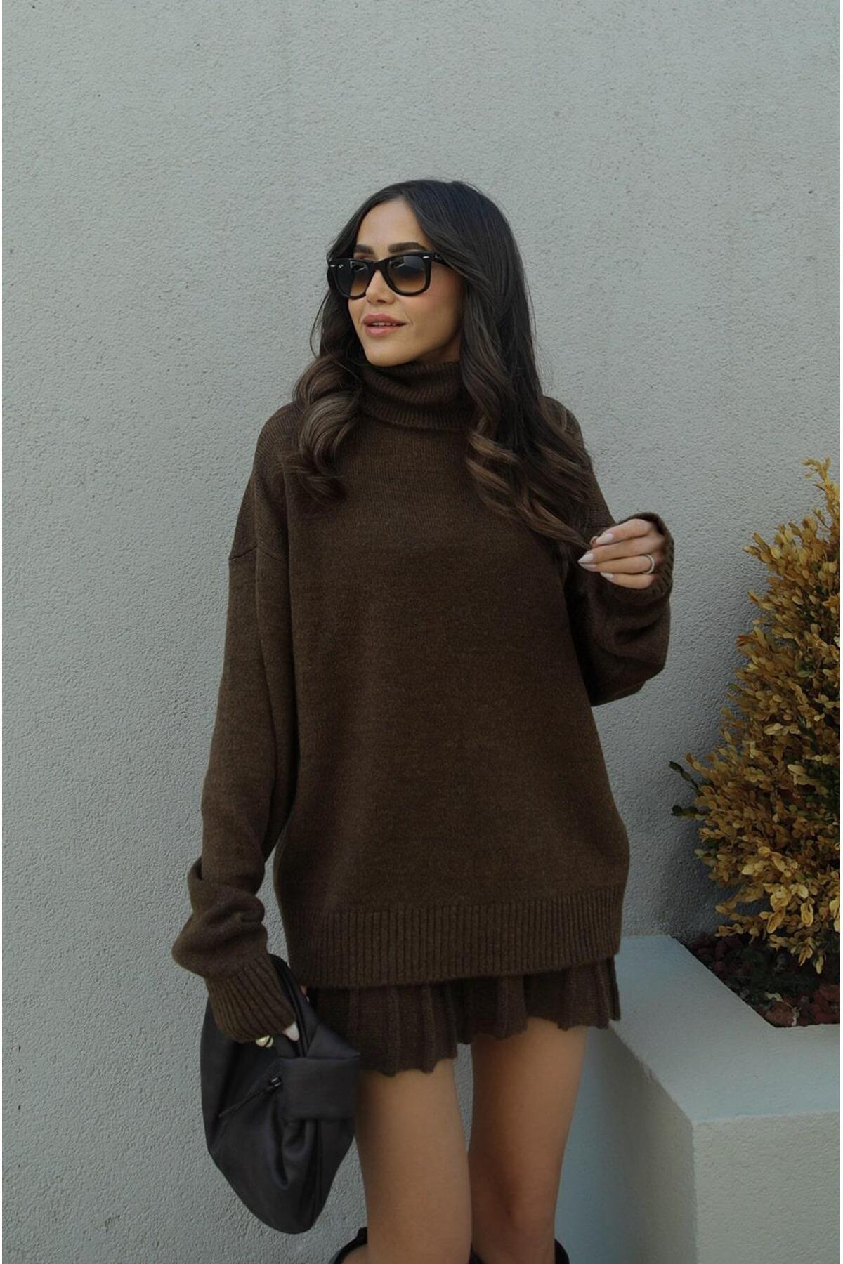 • Julidress, Yüksek Kalite, Yeni Sezon Standart Beden Pileli Mini Etek Balıkçı Kazak Alt Üst Triko Takım