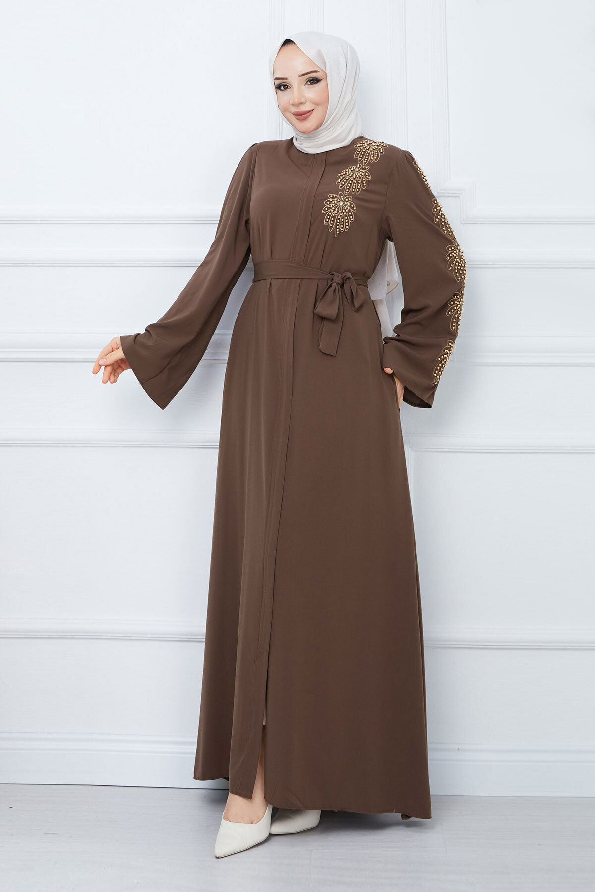 Ürün Özelliği : Y eni sezon Kolu Boncuk İşlemeli Kuşaklı Tesettür Ferace modelidir.