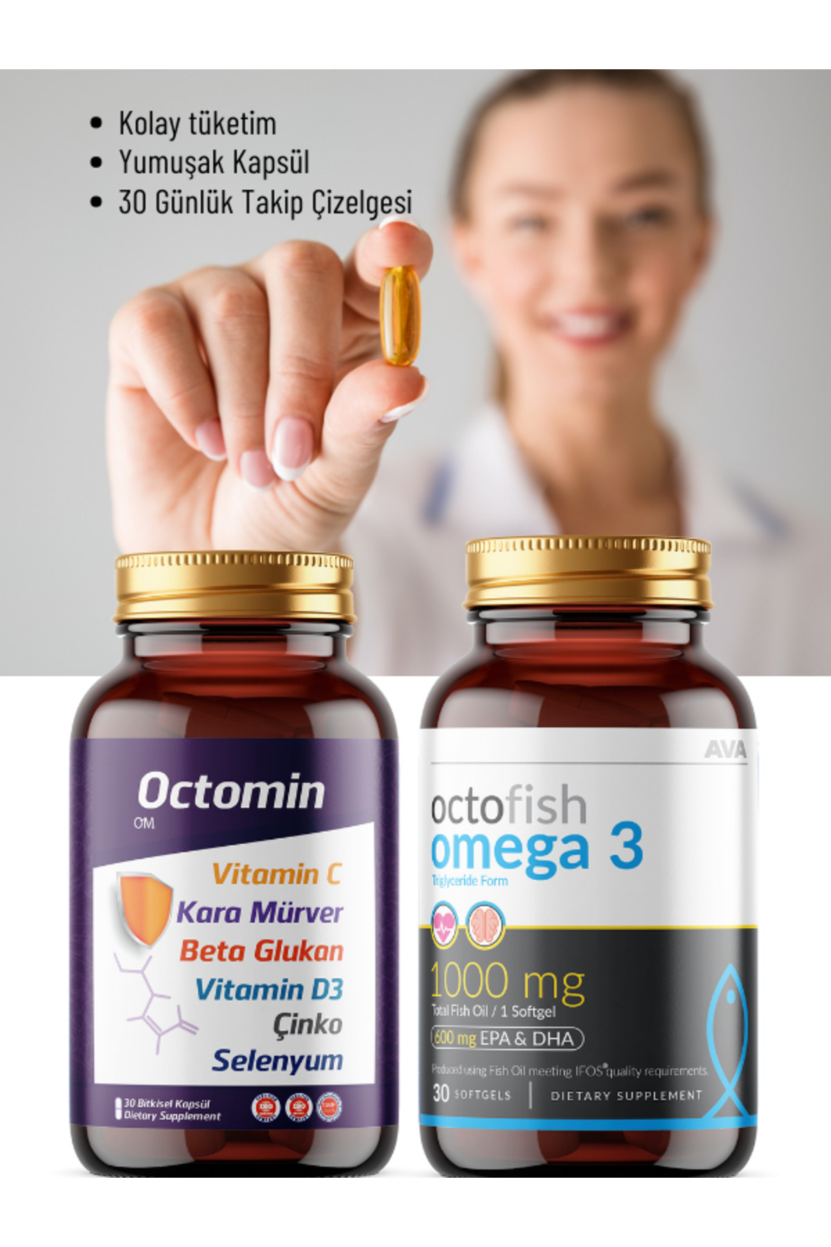 2'li Indirim Paketi Özel Vitamin Octomin Epa Dha %100 C Vitamini Omega3 Enerji Hafıza