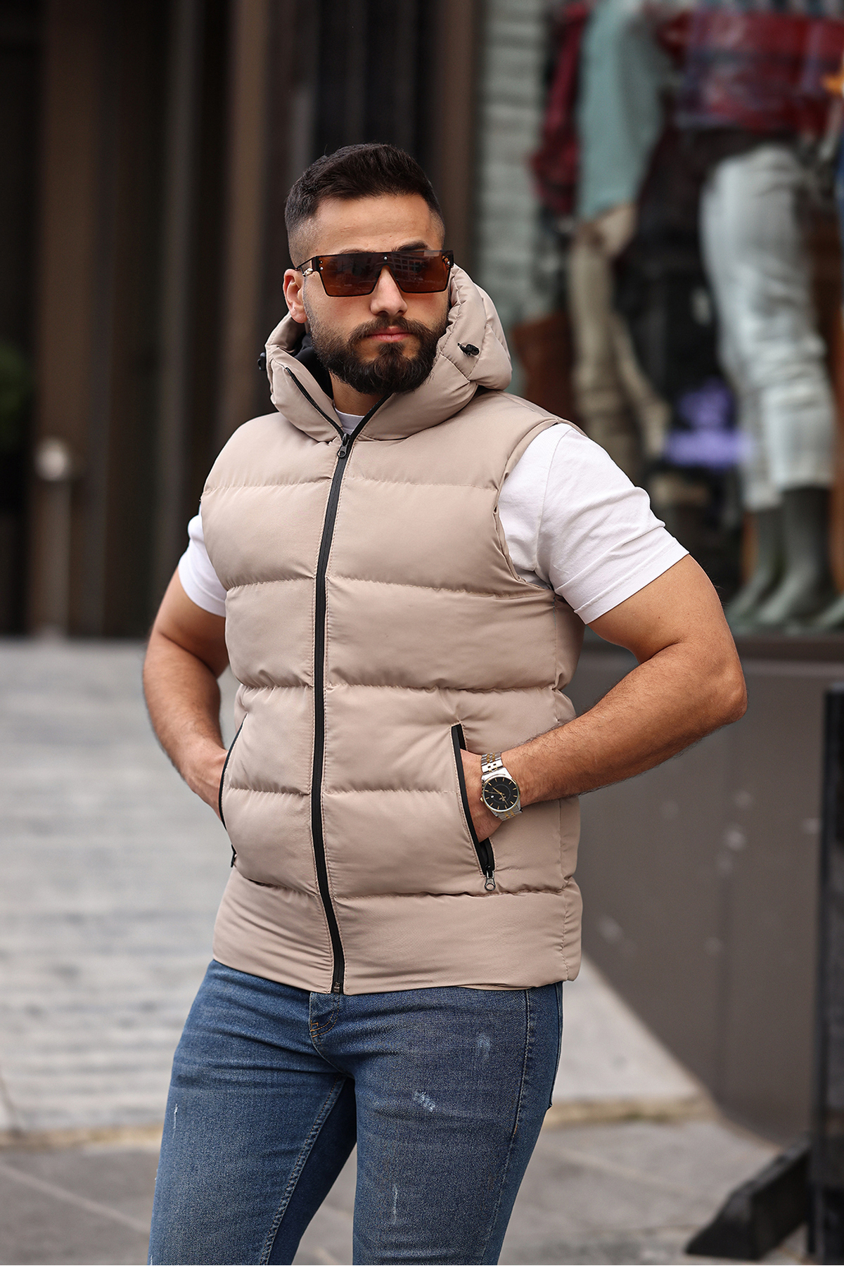 Şişme yelek silueti modern ve dinamik bir görünüm kazandırırken aynı zamanda hareket özgürlüğünüzden ödün vermez.