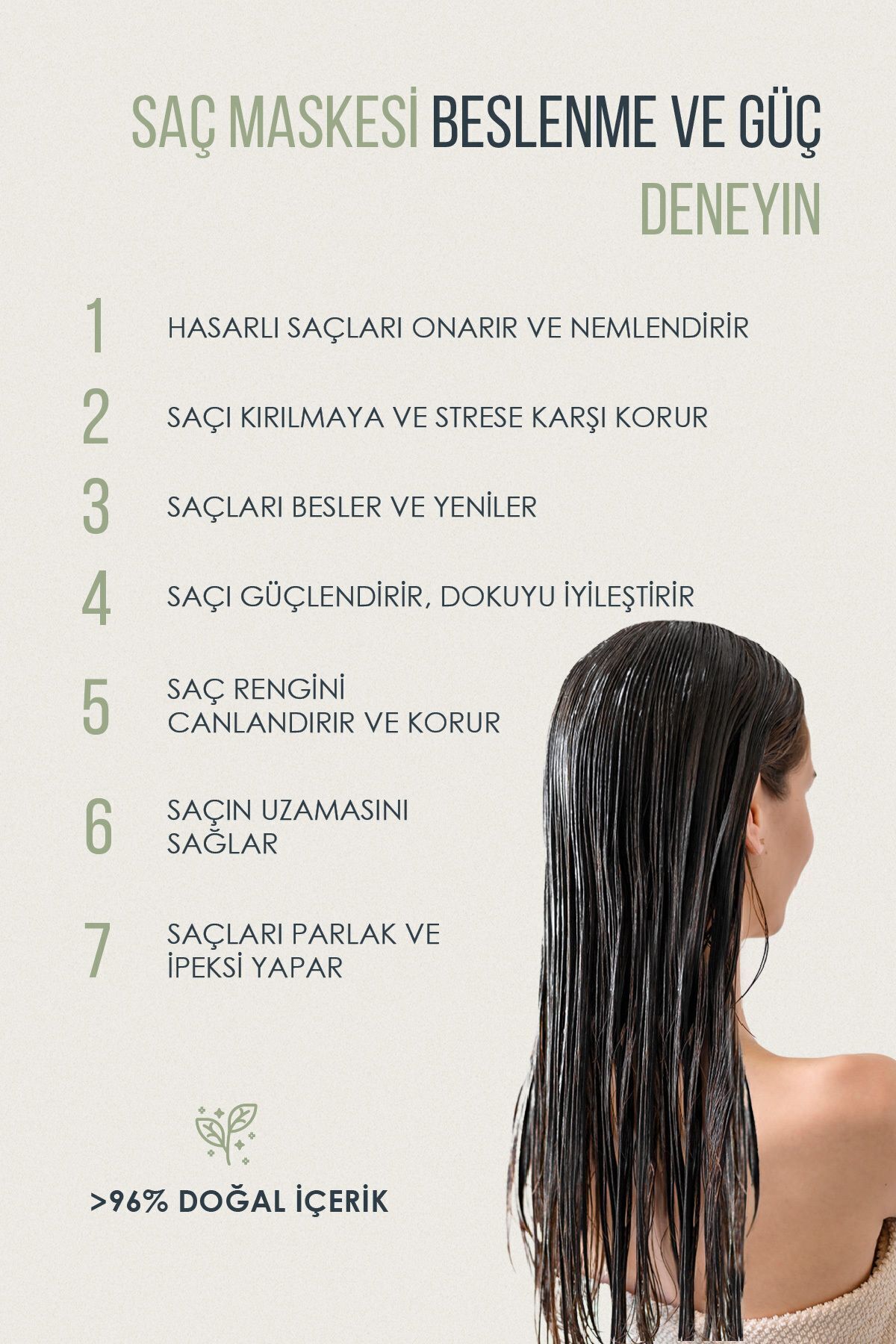 Saç Bakım Maskesi Beslenme ve Güçlendirici Tüm Saç Tipleri İçin, 380 ml Saç güçlendirici besleyici ve nemlendirici saç maskesi.
