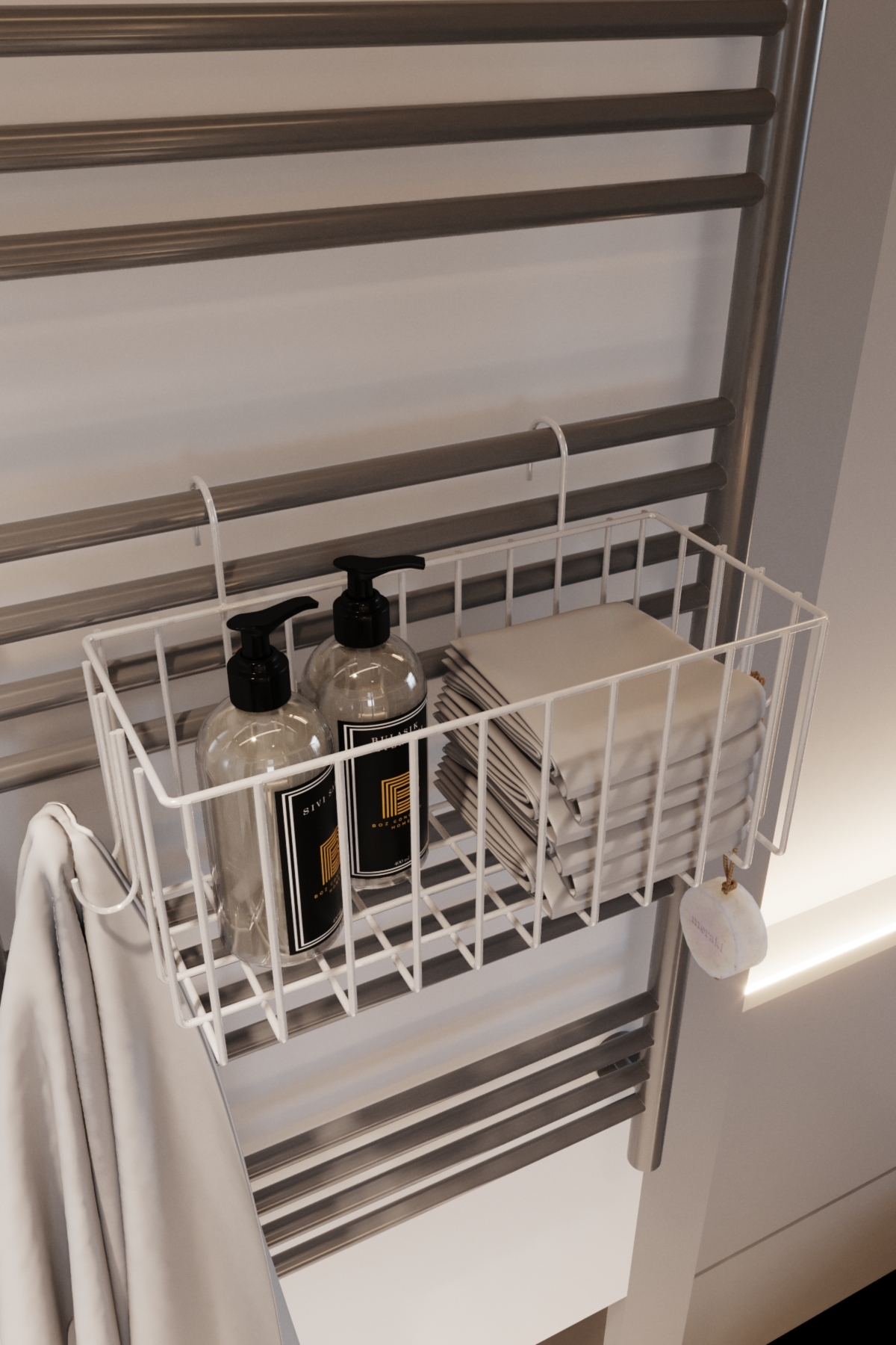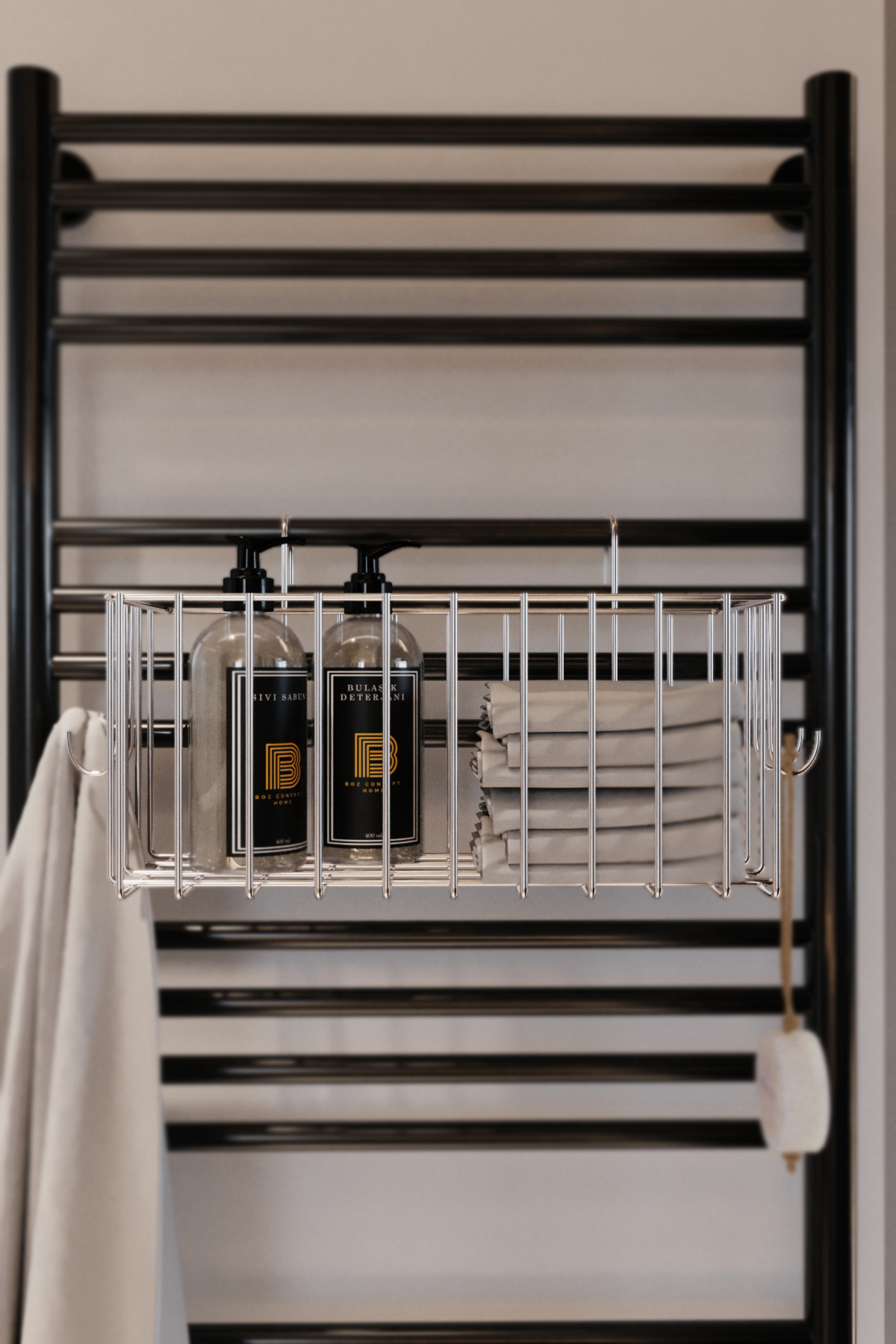 Paslanmaz çelikten yapılmış kancalar, havlularınızı asmak için ideal bir alan sunar, böylece havlularınız her zaman hızlıca kurur ve kullanıma hazır olur.