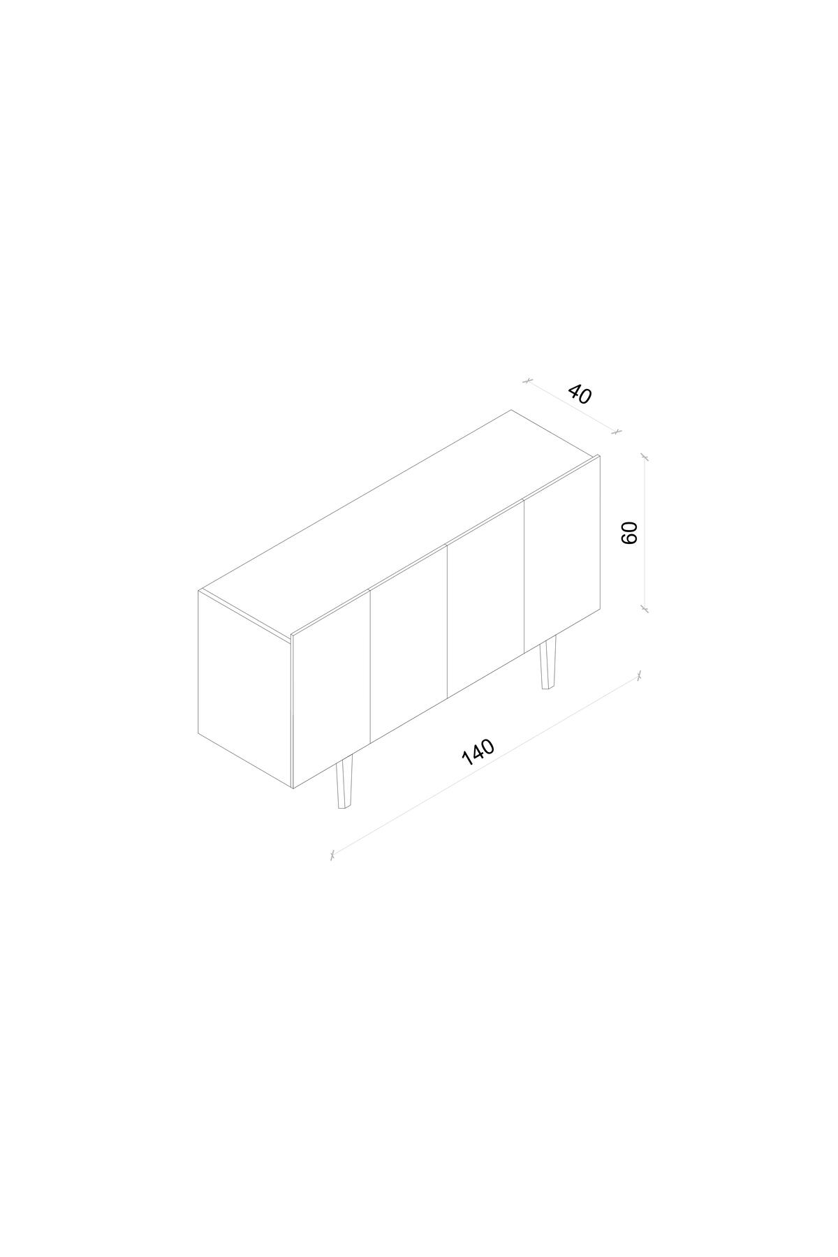 En: 140 cm Boy: 80 cm Derinlik:40 cm Ayak yapısı ve boyu: Ahşap 20 cm Kapak sayısı:4 Fonksiyon: Raflı Kurulum: Ürünü yalnızca yıldız tornavida ile kurabilirsiniz.