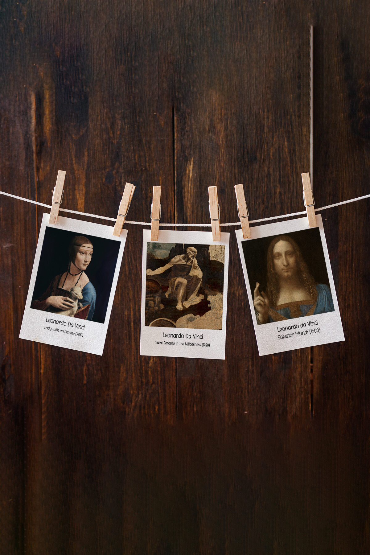 Ünlü ressam Leonardo da Vinci tabloları dekoratif polo kart