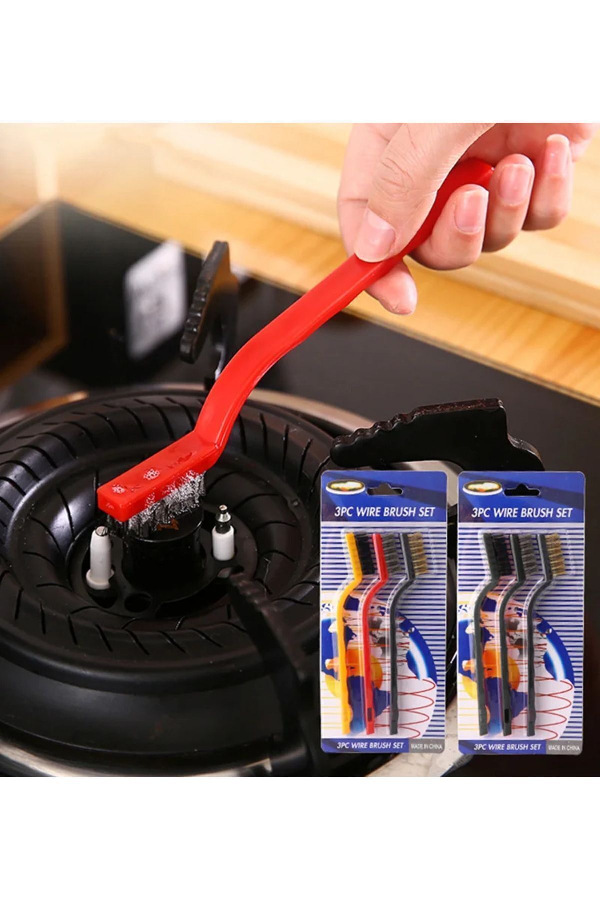 3 Adet Çelik Bakır Plastik Tel Fırça Yanık Ocak Gözü Şapkası Fırın Mangal Tost Makinası Izgara Airfryer Rezistans Temizliği Kir Pas Yağ Sökücü Temizleme Fırçası Uzun sap ve açılı kafa tasarımına sahip bu fırçalar ulaşılması zor her türlü inatçı lekeyi çıkarmanıza yardımcı olur