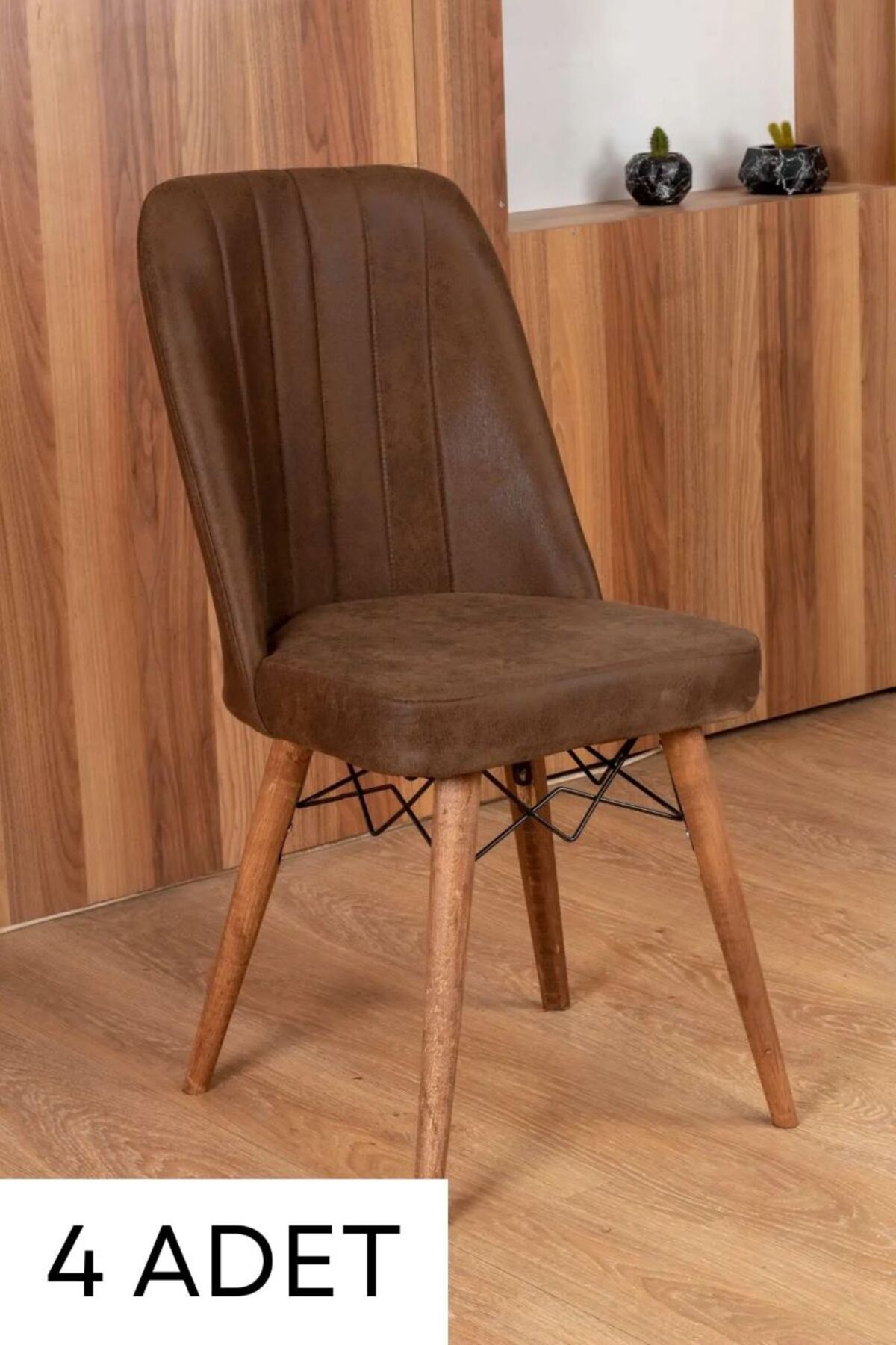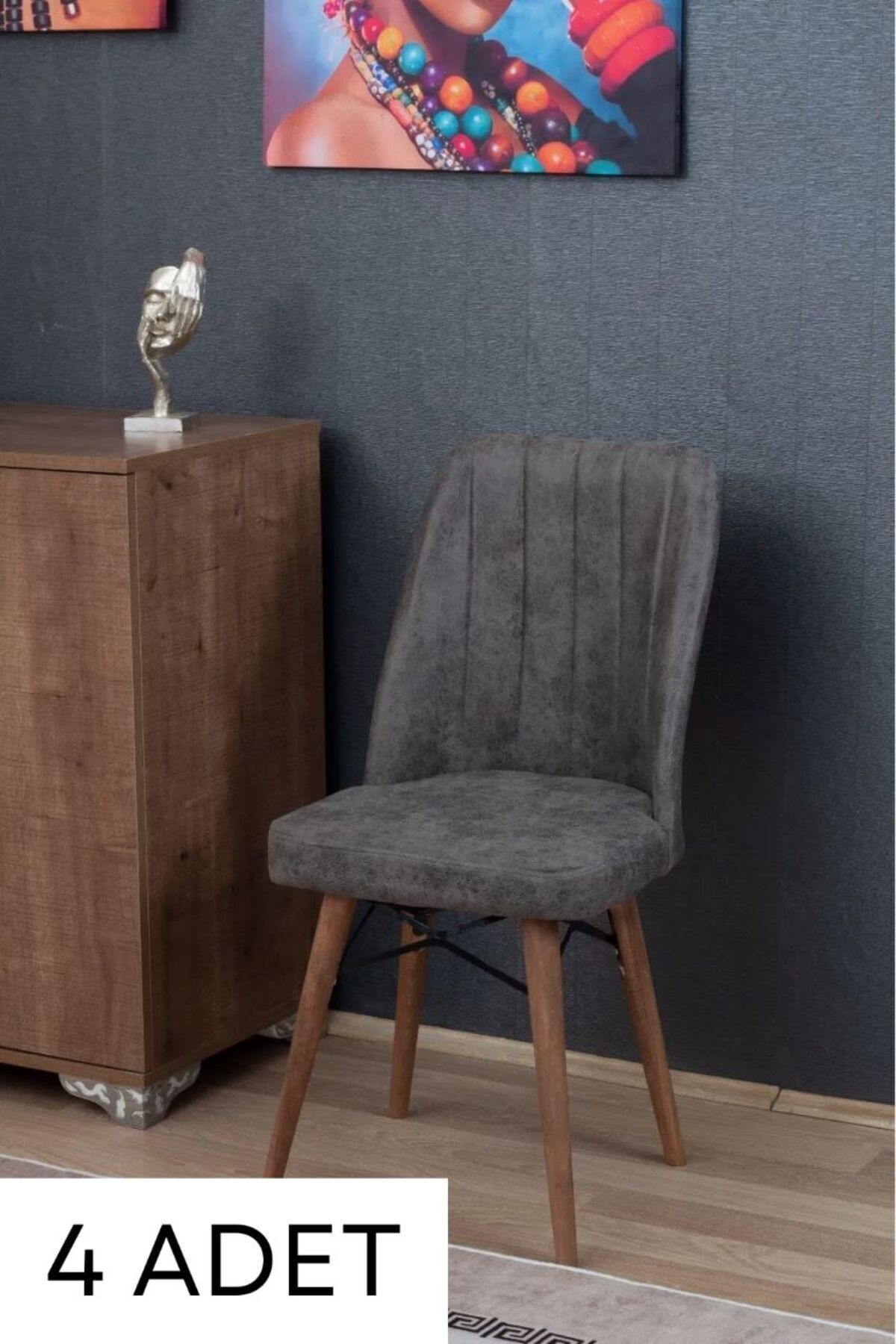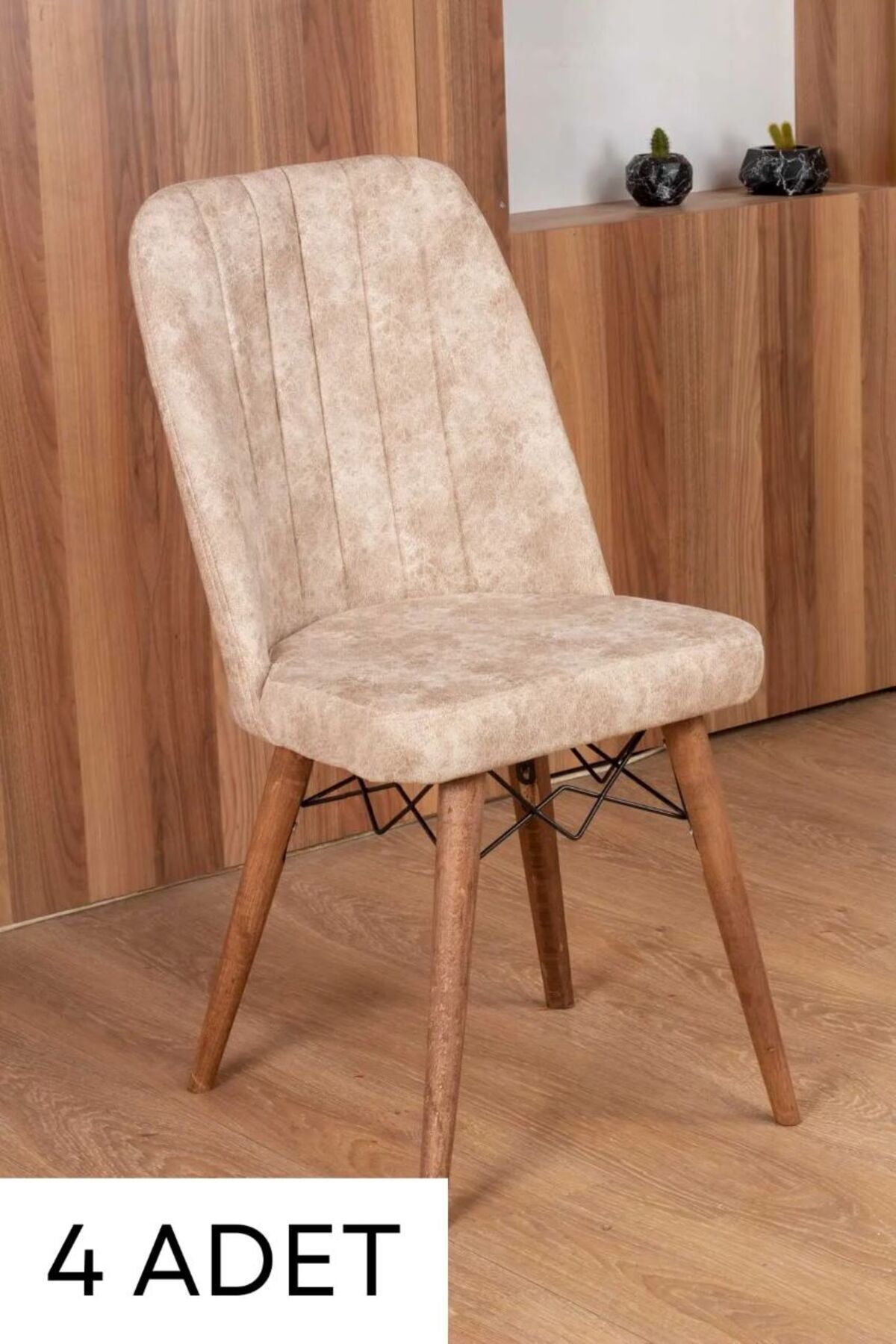 Jev Serisi Nubuk Kumaş Gürgen Pinotex Ayaklı 4 Adet Sandalye