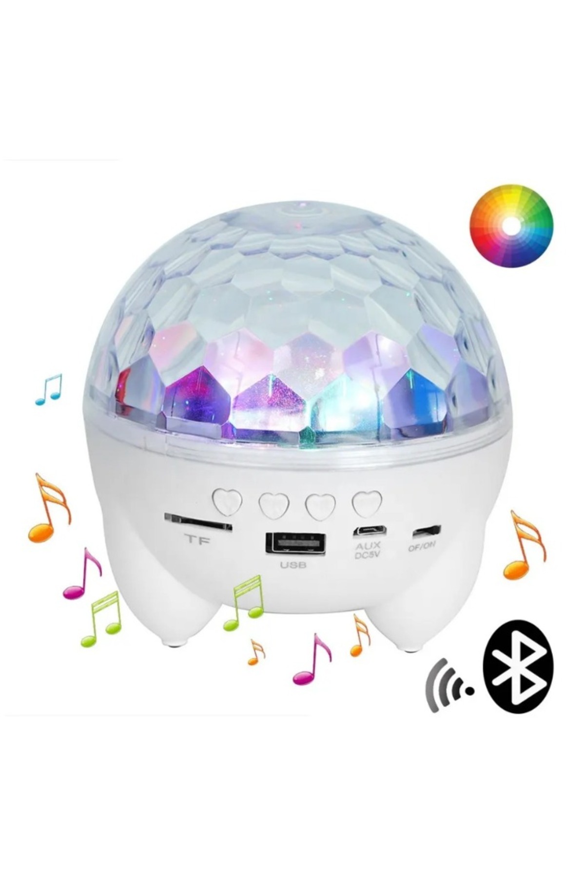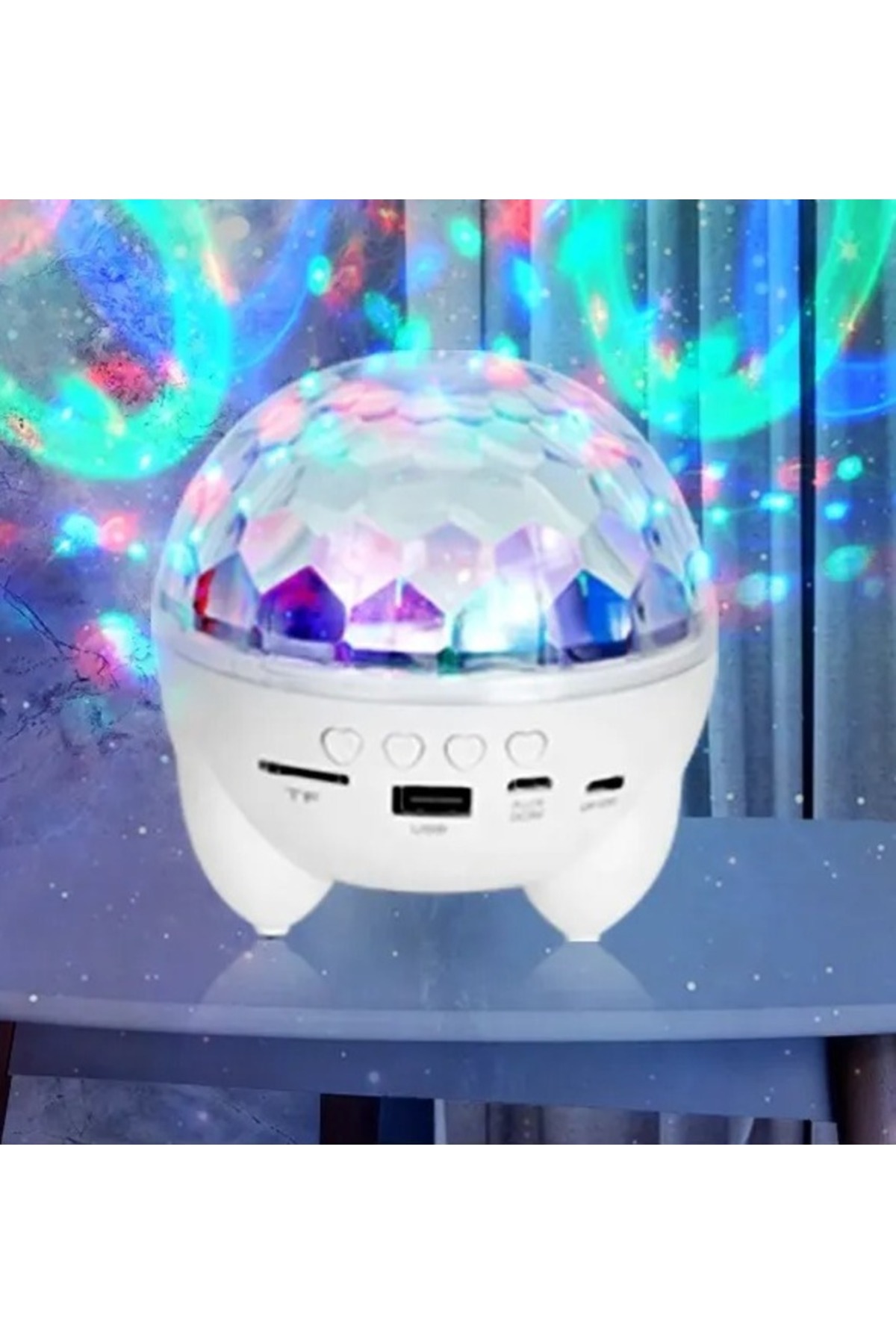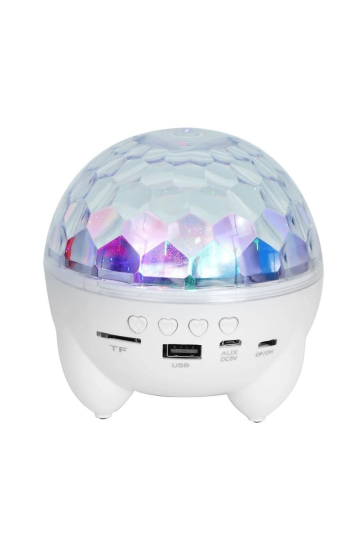 ŞARJ EDİLEBİLİR MİNİ PROJEKSİYON HOPARLÖR VE MASA LAMBASI DİSKO TOPU 120X110 MM SD KART GİRİŞLİ 1200 MAH BATARYA 6W/1A/5V