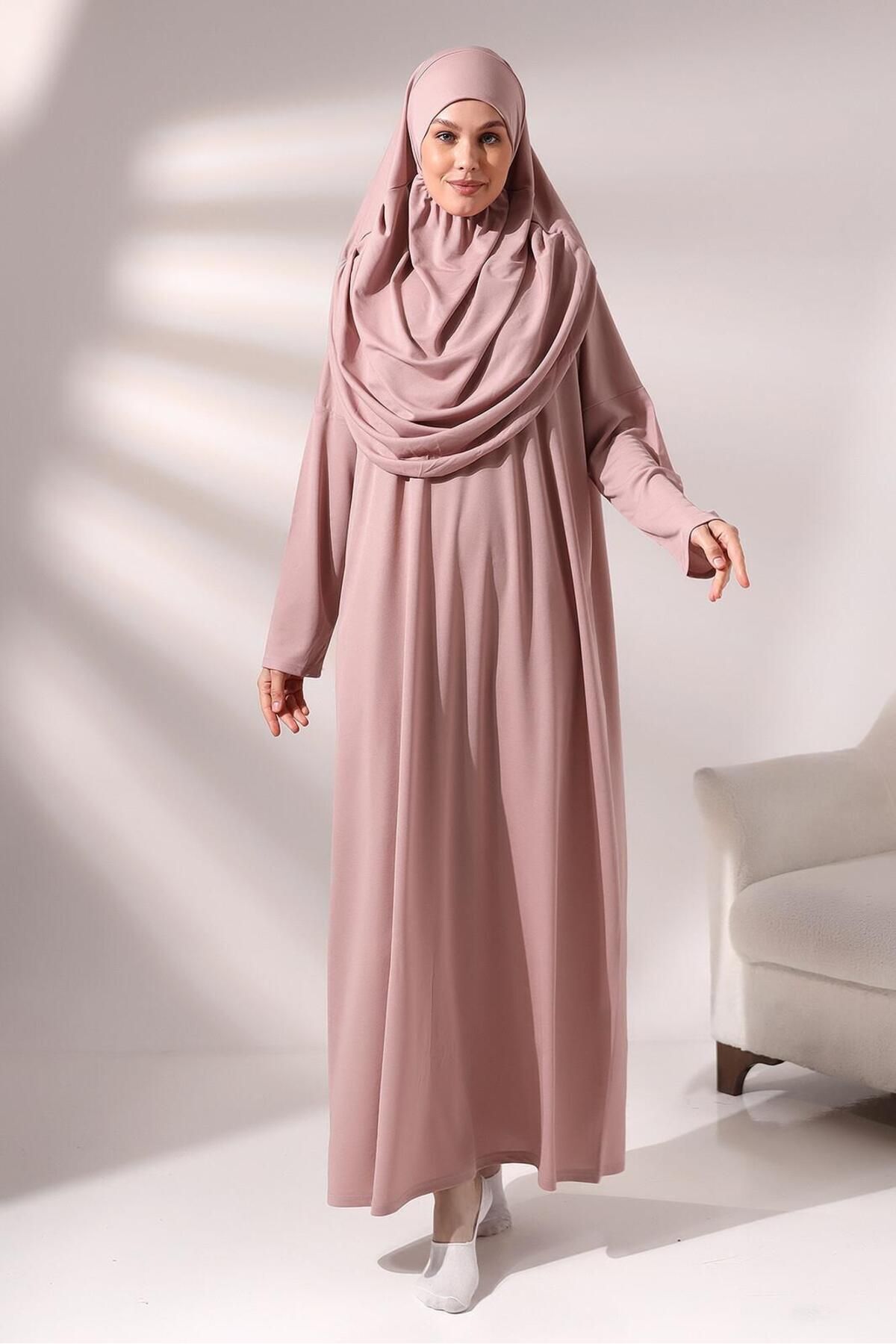 Set İçeriği 1 Adet Çantalı, Kendinden Başörtülü Namaz Elbisesi