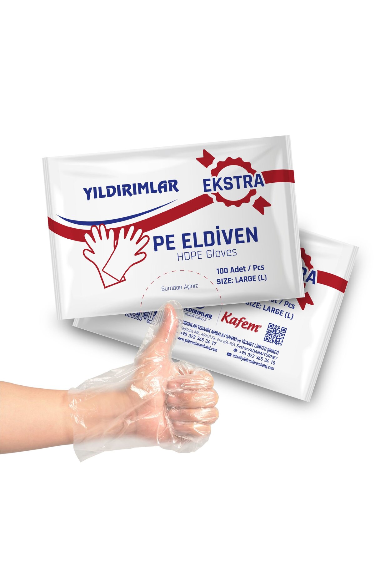 Yıldırımlar PE Extra Tek Kullanımlık Şeffaf Eldiven 100 Lü X 25 Paket Yıldırımlar PE Extra Şeffaf Eldivenler Pratik kullanımı sayesinde