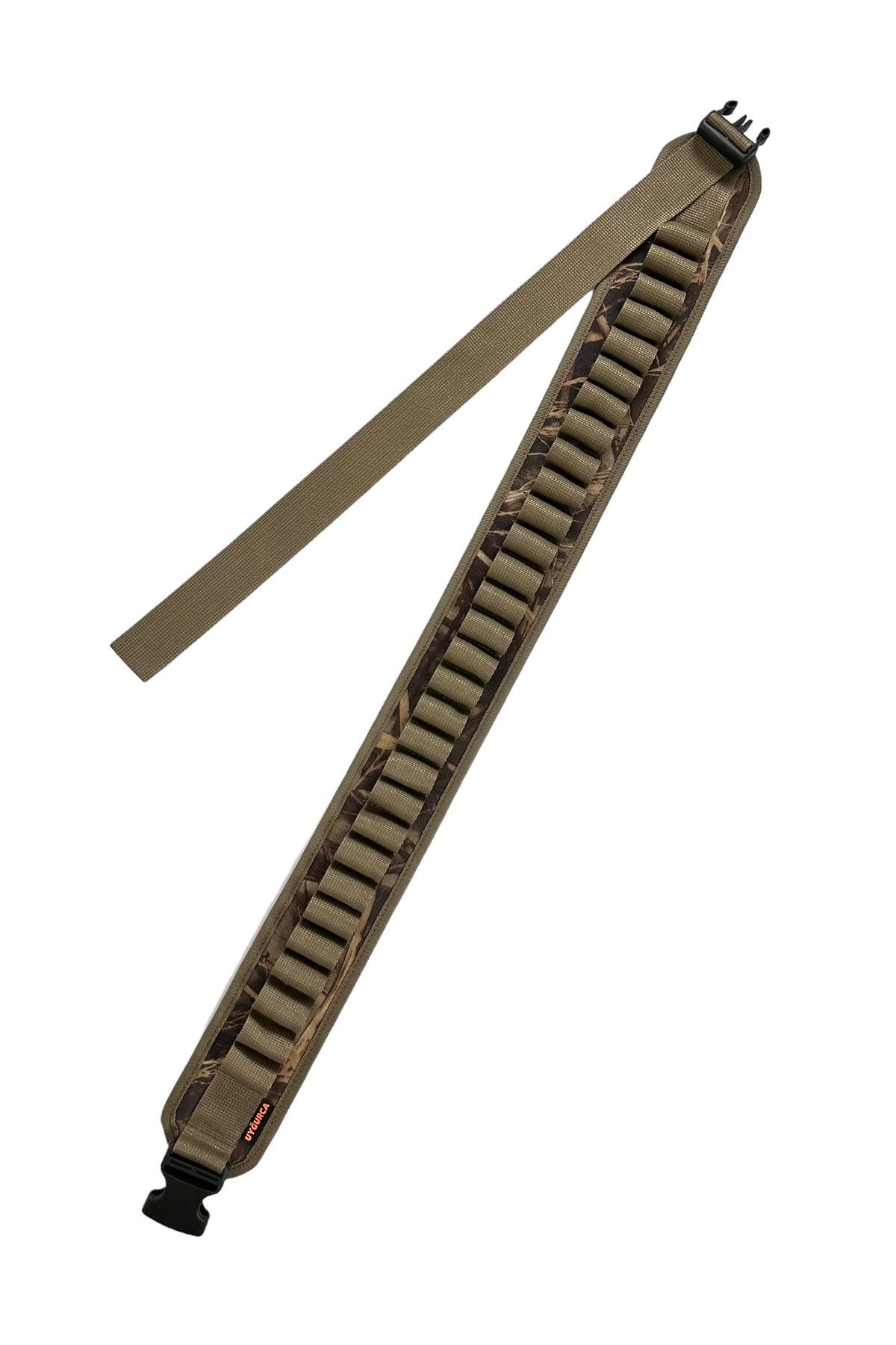 30 Fişek Kapasiteli Açık Fişeklik - Bej Şeritli Sazlık Desen Kumaş - 12 Calibre