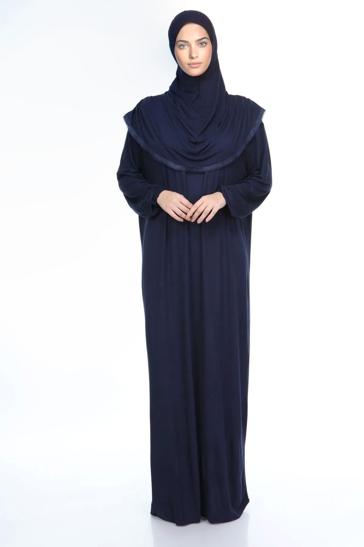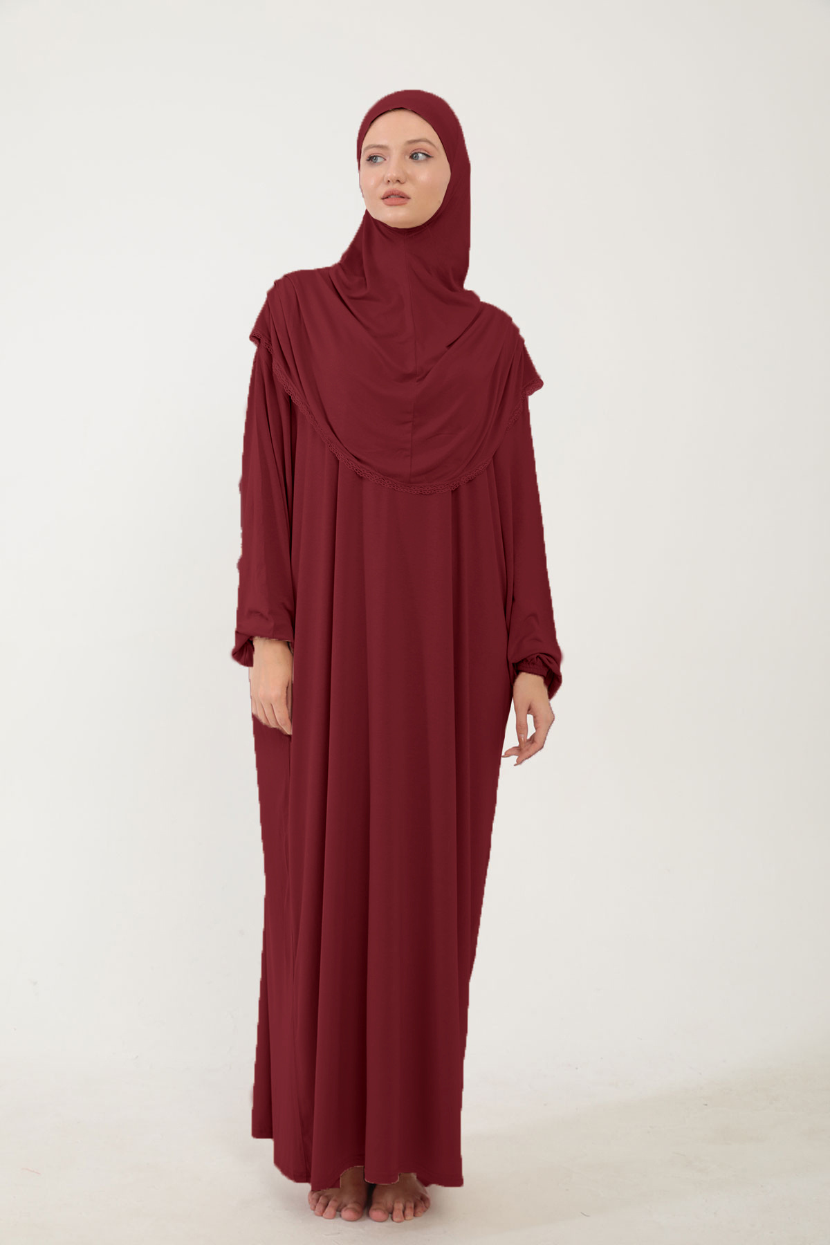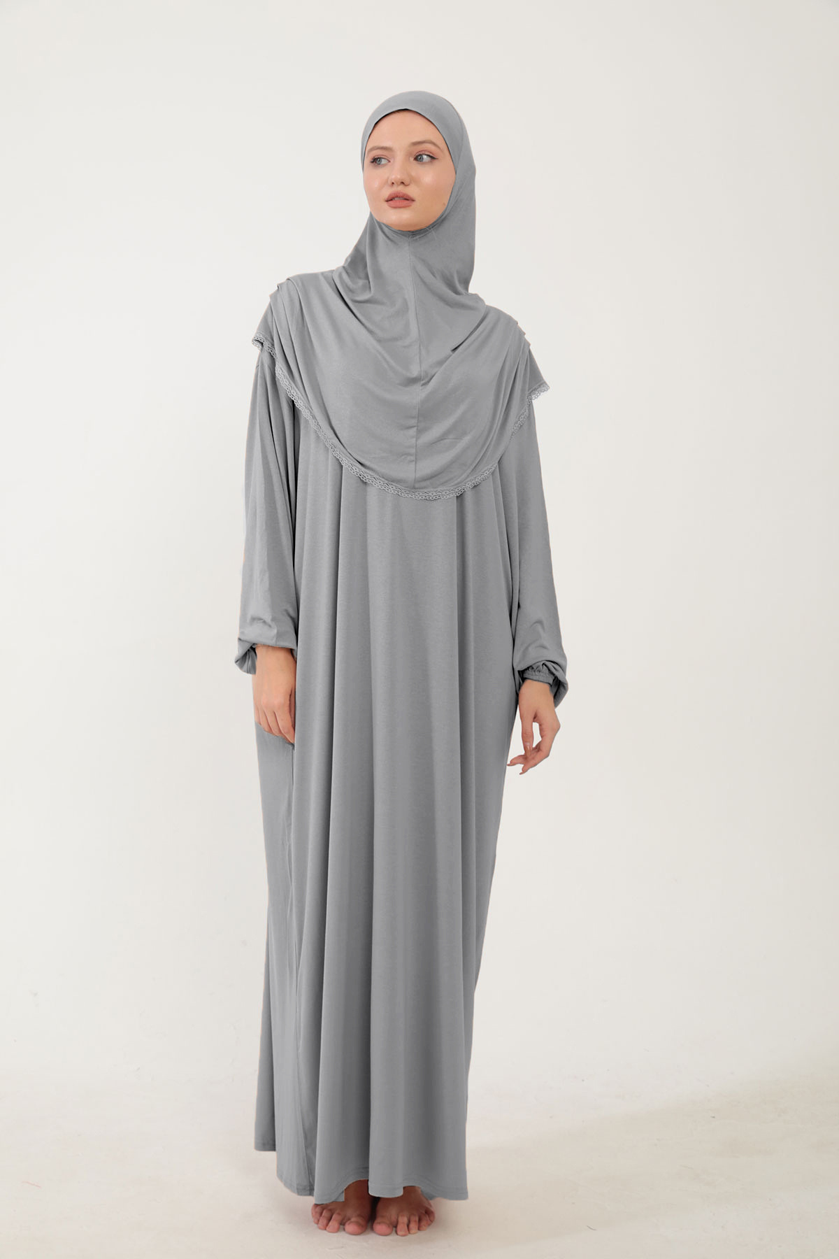 Dökümlü ve rahat kumaşı ile boynunuzu da örtecek şekilde tasarlanan namaz elbisesi, bone takmanıza gerek kalmadan size tam bir tesettür imkanı sunar.