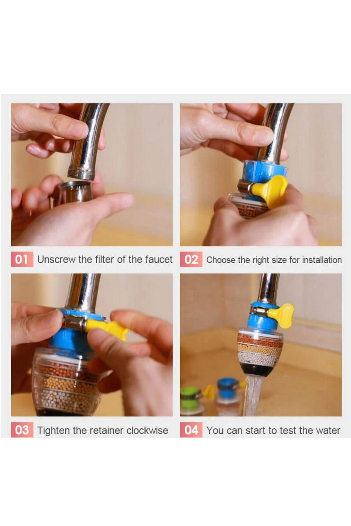2, Musluk Su Filtresi: Yerleşik katmanlı filtre, sert su ve kuyu suyunu arıtmak için uygulanan hindistancevizi aktif karbon, zeolit, PVA dokunmamış kumaşlar, kalsiyum sülfit ve kauçuğu ayırabilir.
