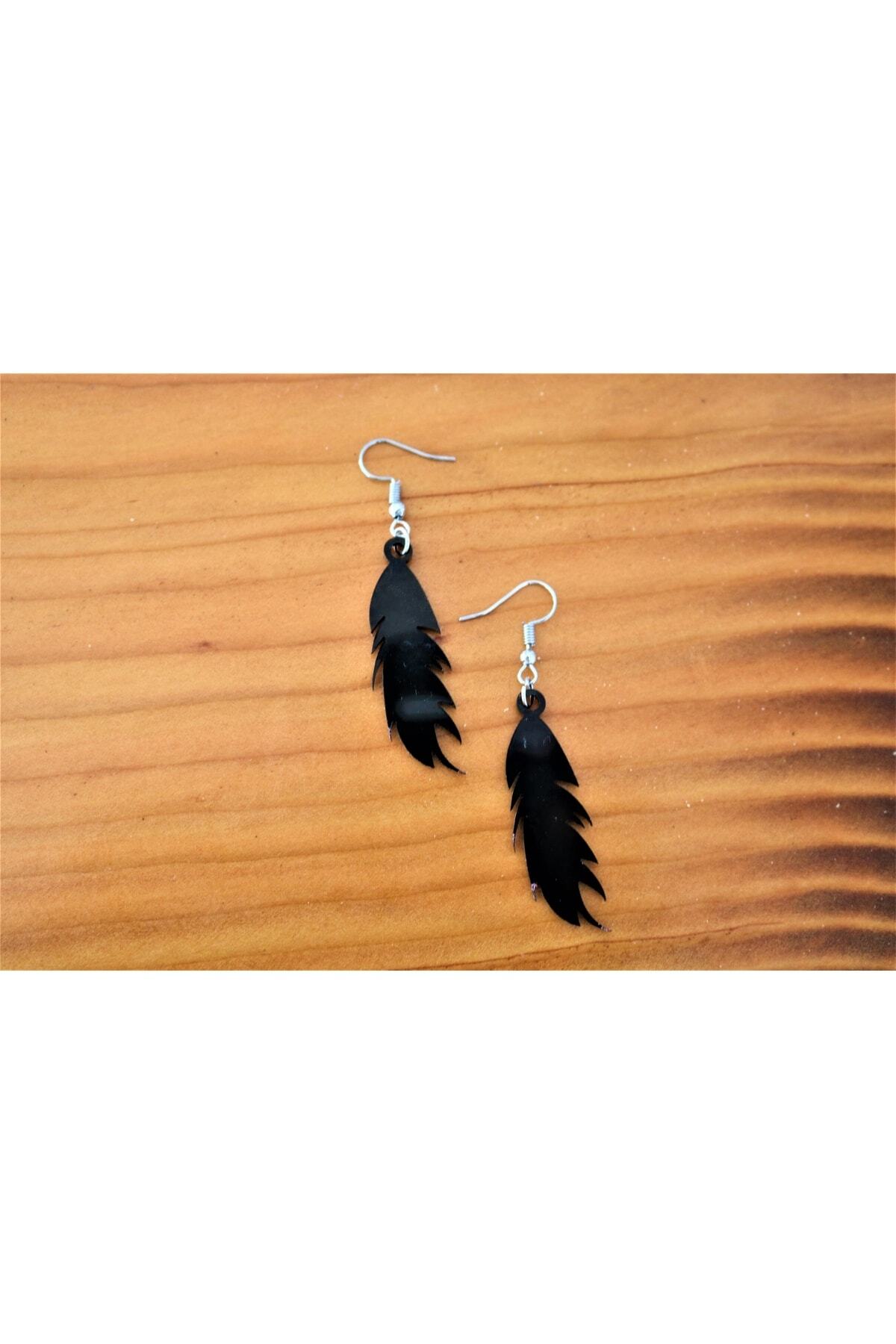 Trend Model Gotik Mitolojik Tüy Pleksi Akrilik Siyah Küpe Hafif Olduğundan Rahat Kullanım Sağlar.