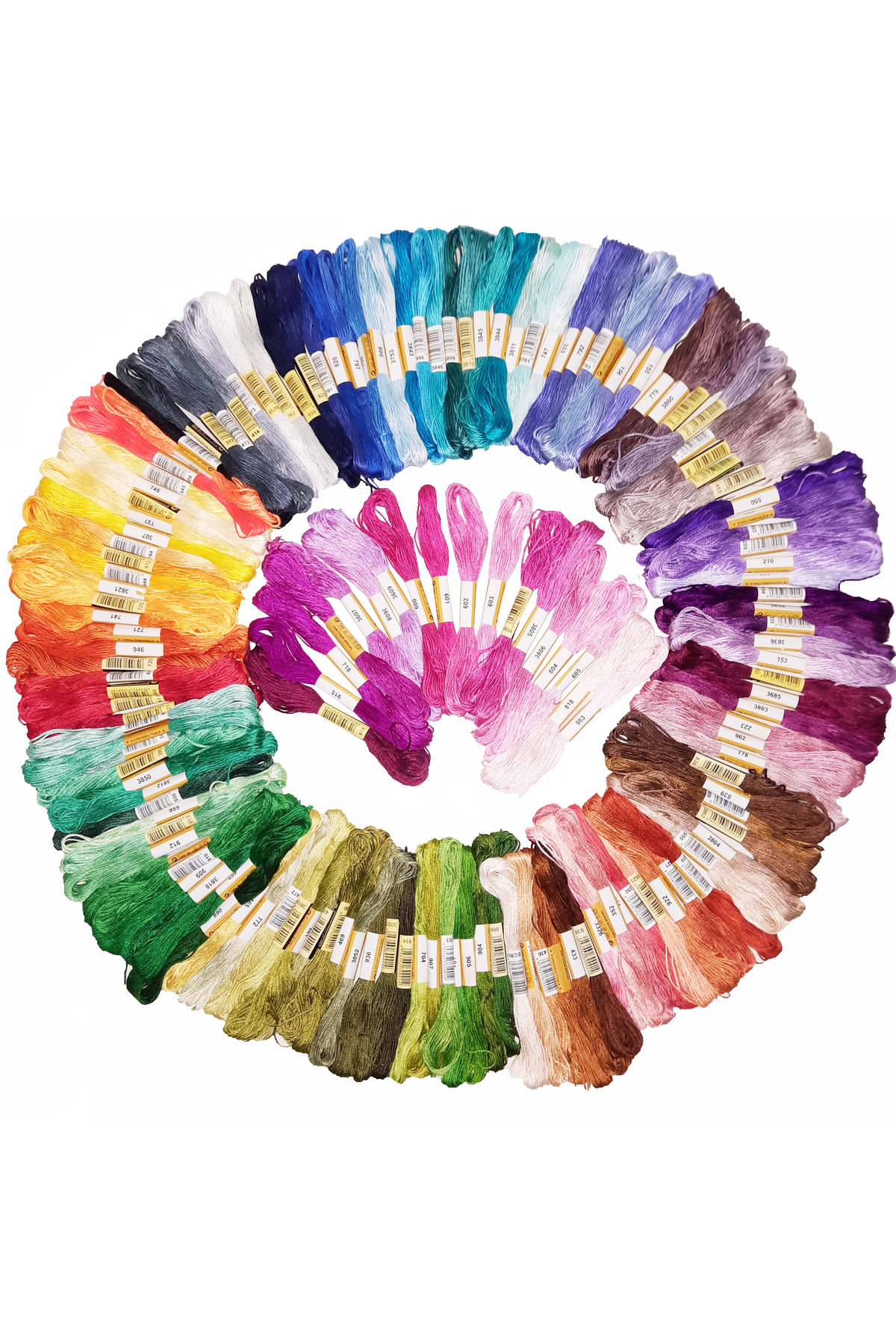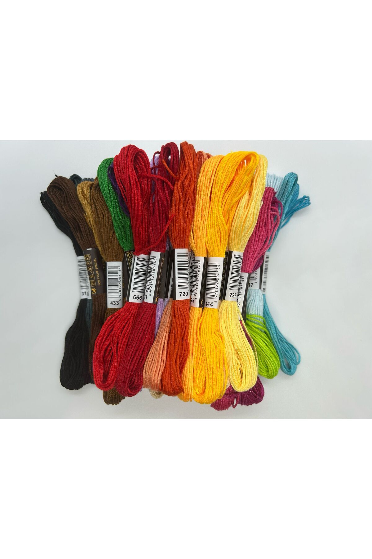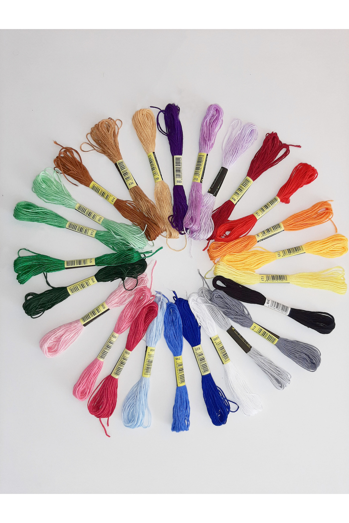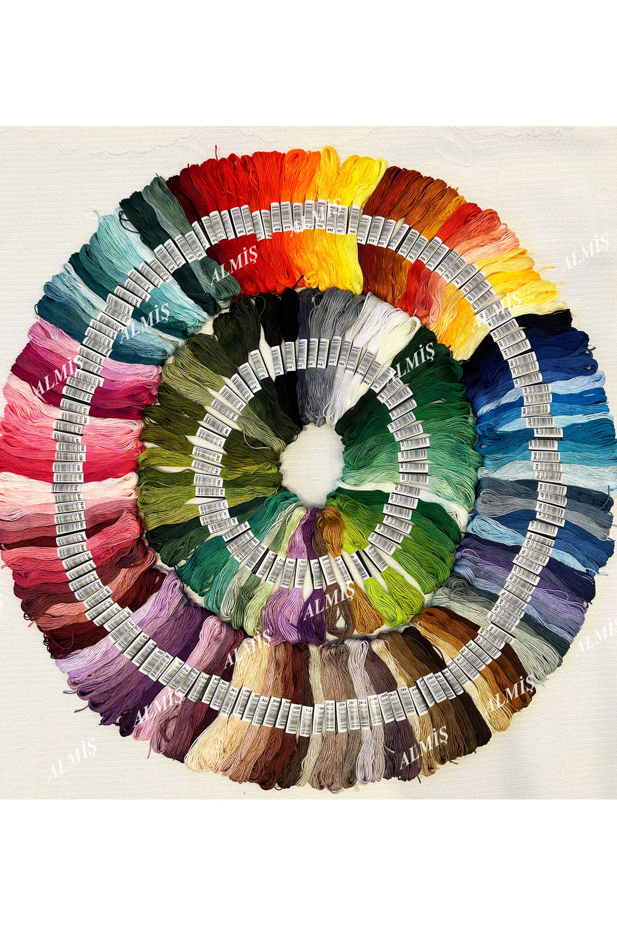 Almila 50 Adet Muline Çapraz 8 Metre 6 Kat Farklı Renk Kanaviçe Nakış Rokoko Ipi Almila 8 metre 6 kat çapraz dikiş muline kanaviçe ipi