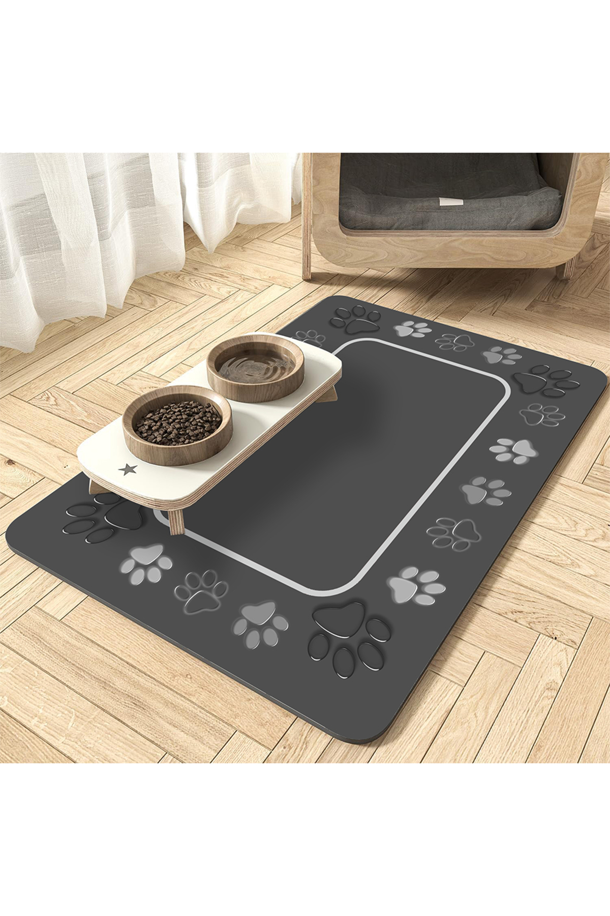 AsMat Paw Evcil Hayvan Besleme Matı, evcil dostunuzun şıklığını ve konforunu bir araya getiren benzersiz bir tasarım.