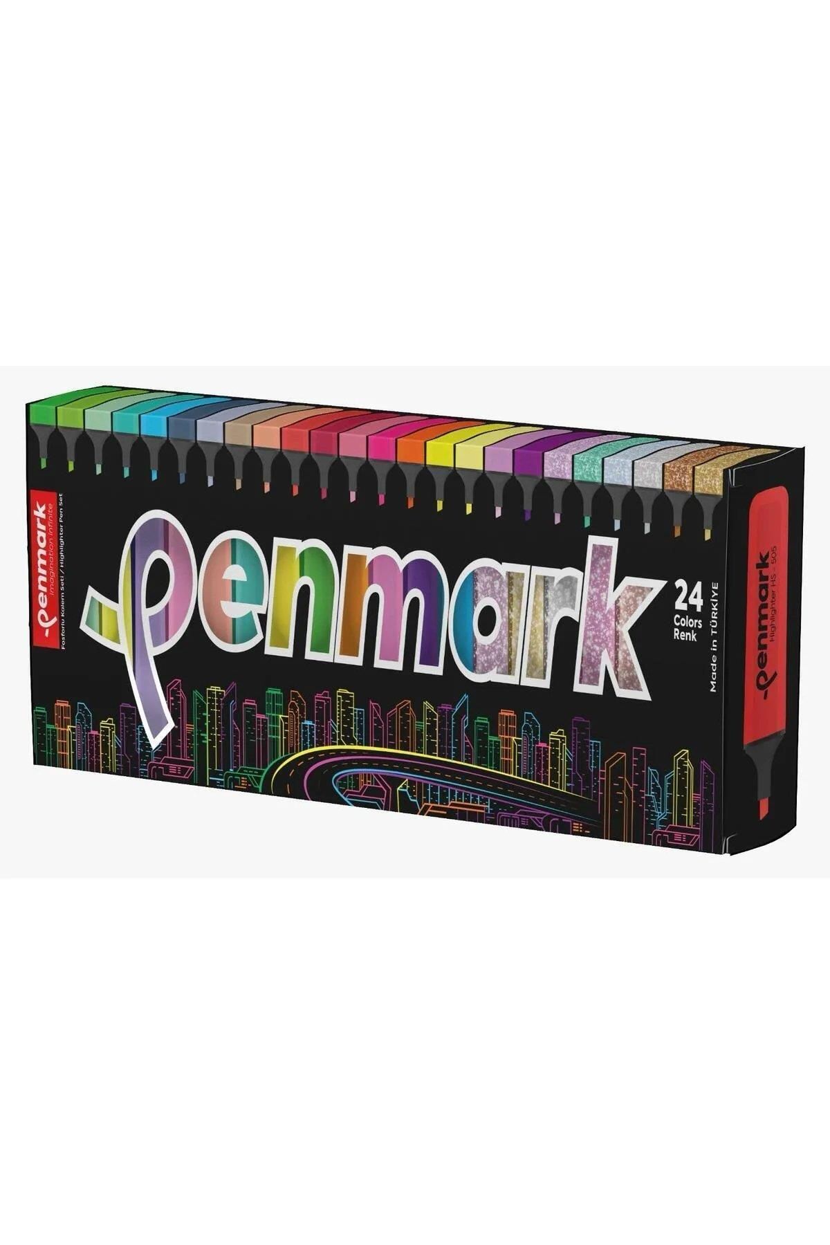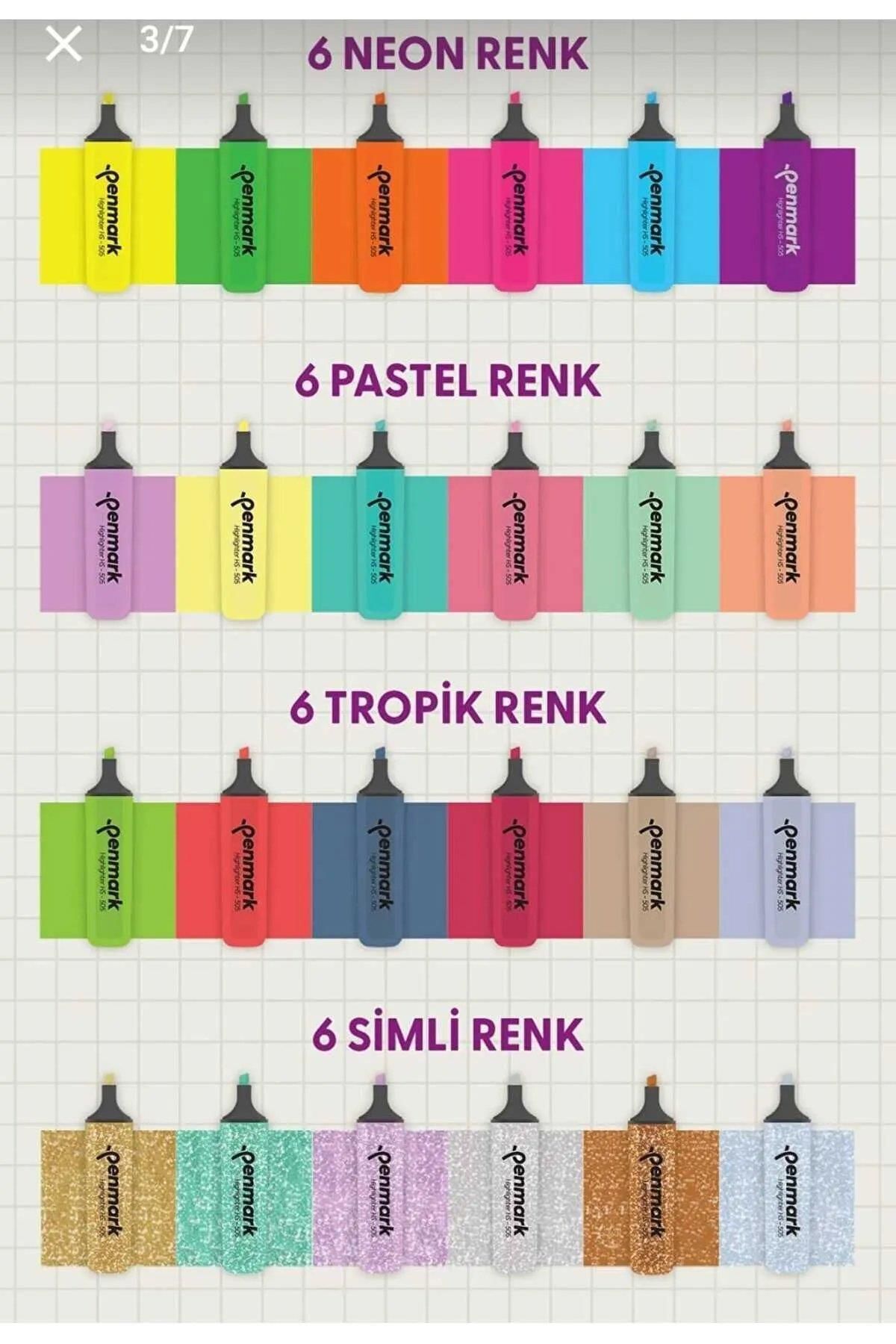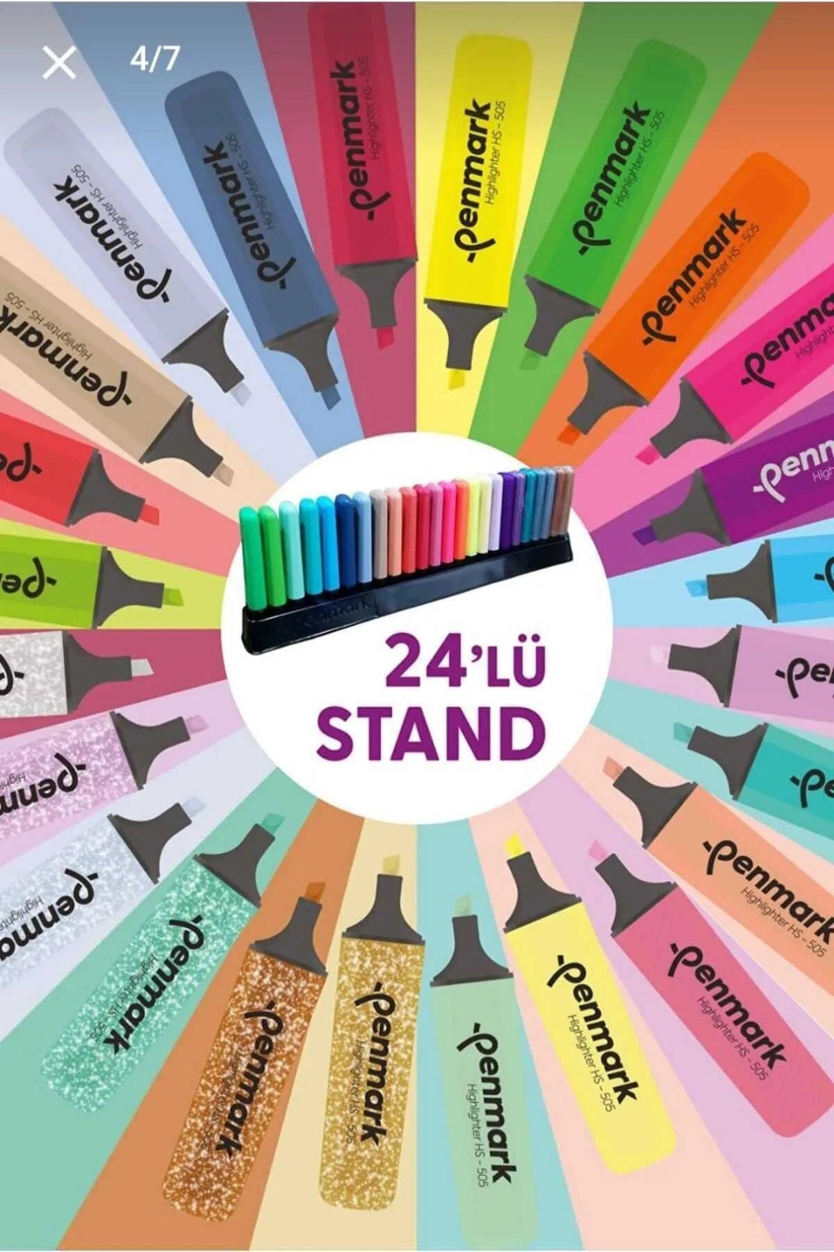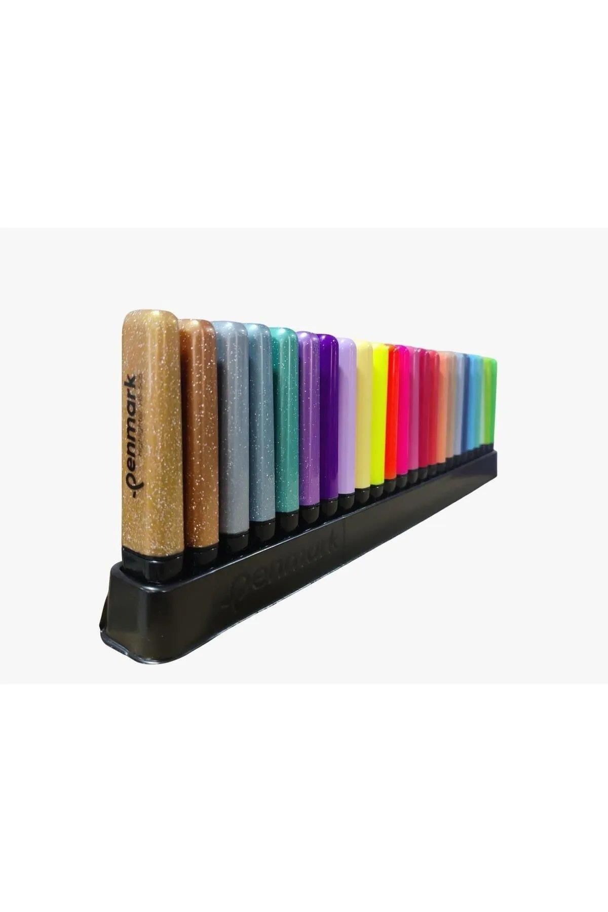 PENMARK PLASTİK STANTLI 24 ADET FOSFORLU KALEM 6 NEON 6 PASTEL 6 TROPİK 6 METALİK SİMLİ MASAÜSTÜ SET