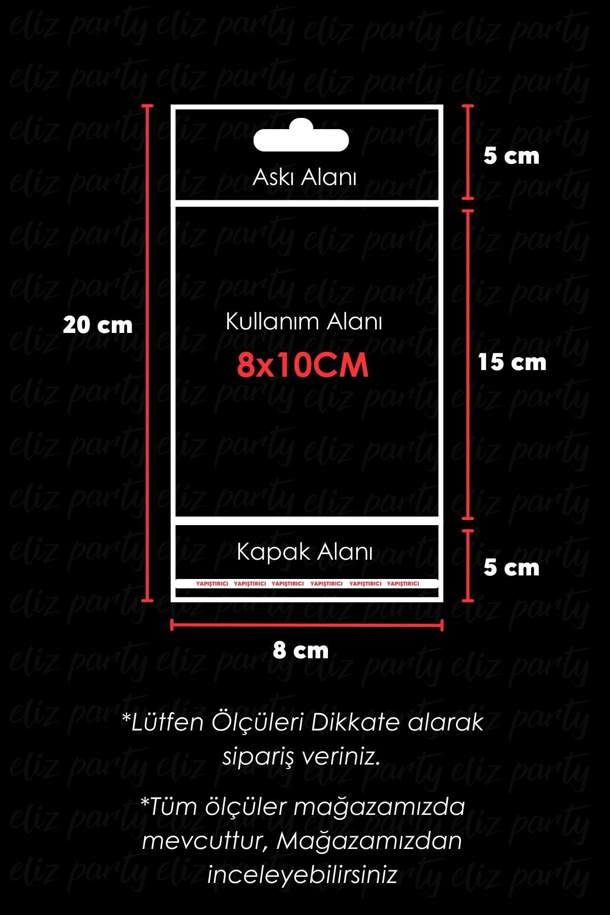 Orta boy (8x20 cm) ölçülerindeki bu poşetler, kurabiye, raf poşeti ve hediye paketleme gibi çeşitli amaçlar için idealdir