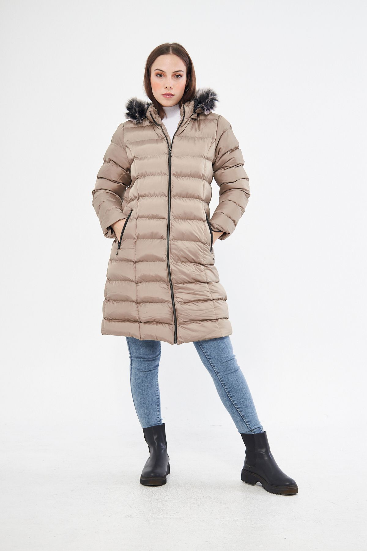 Astarlı yapısı ile konforlu bir kullanım sunan kadın siyah şişme uzun mont, soğuk havalarda sizi sıcak tutar.