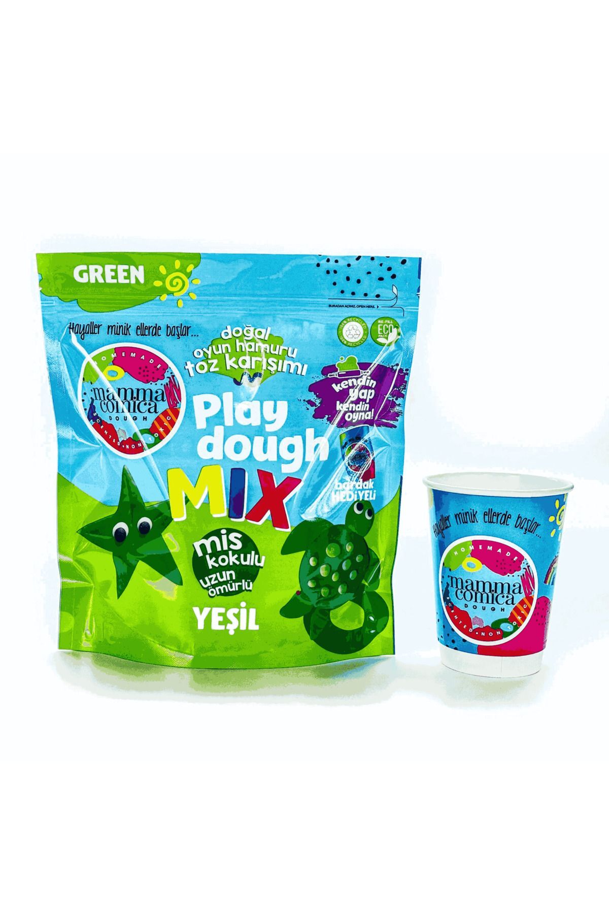 Mammacomica’dan yepyeni bir ürün! “Doğal Oyun Hamuru Toz Karışımı” Sadece yağ ve su ekleyerek birkaç dakika içinde yumuşacık, uzun ömürlü ve sağlıklı oyun hamurunuza kavuşacaksınız! Çocuklarınız için yapması çok kolay ve bir o kadar da eğlenceli Mammacomica toz karışımı çevre dostu ambalajlarda sizlere ulaşıyor.