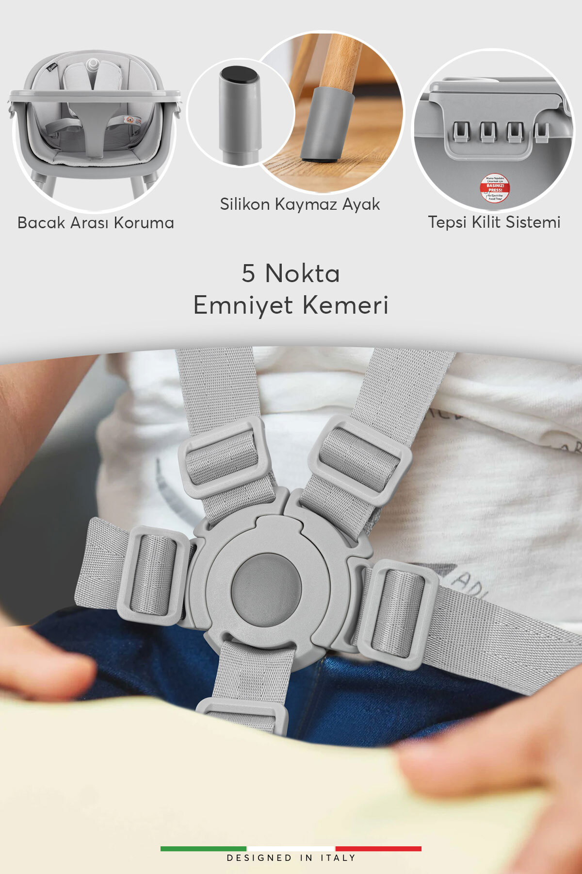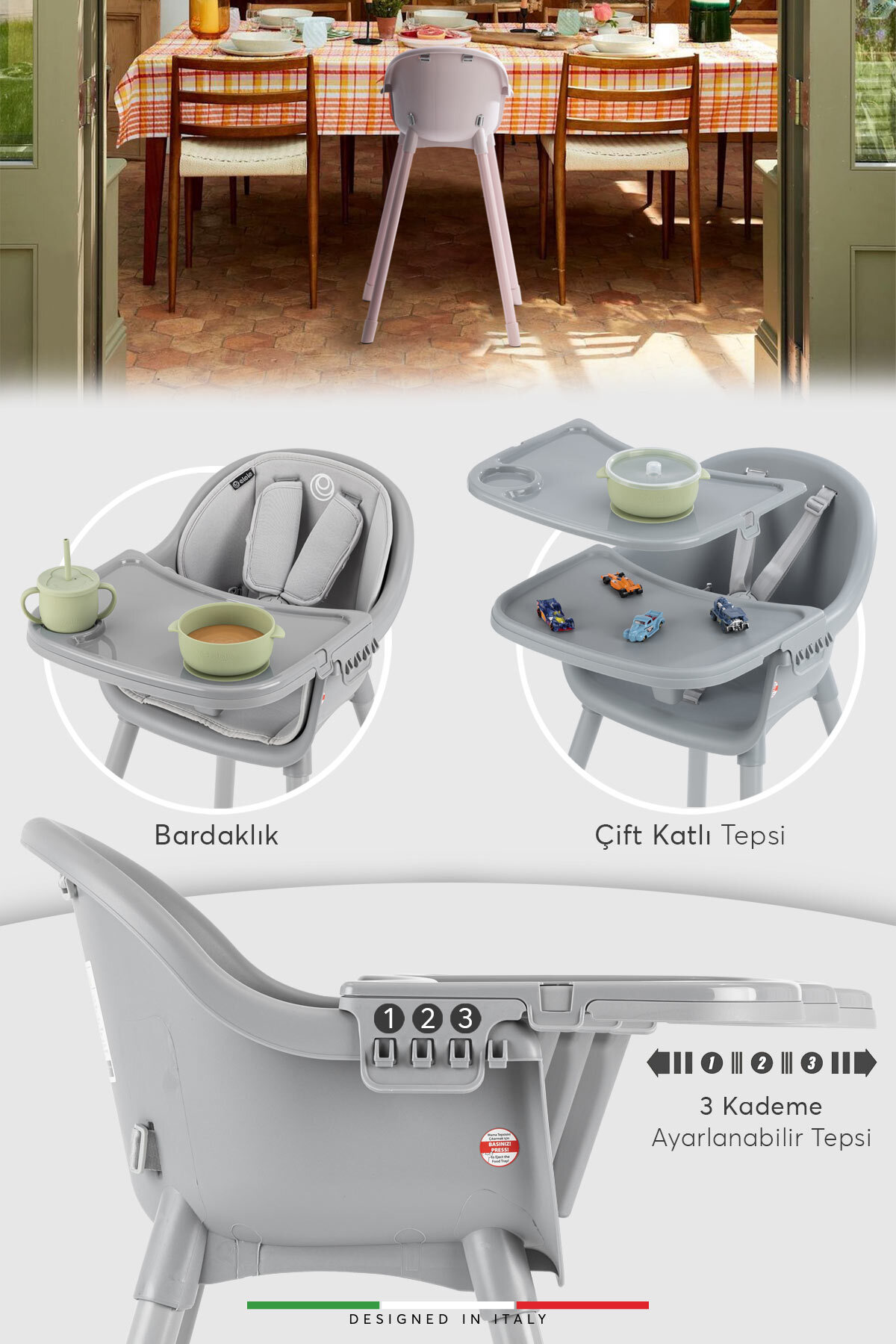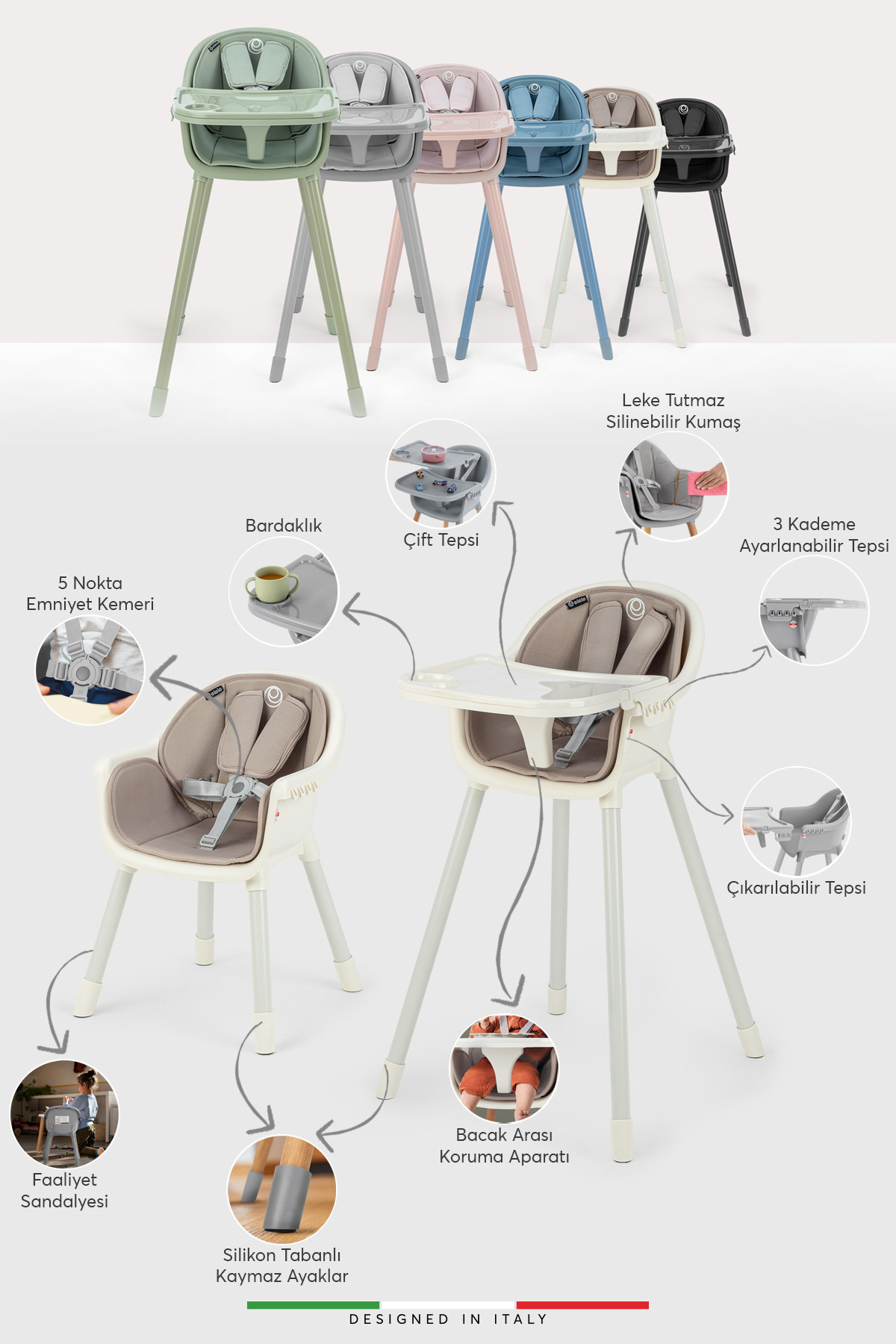 - İç pedli mama oturağı sayesinde bebeğinizin beslenme sırasında rahat etmesini sağlar ve dökülmeleri kolayca temizleyebilirsiniz