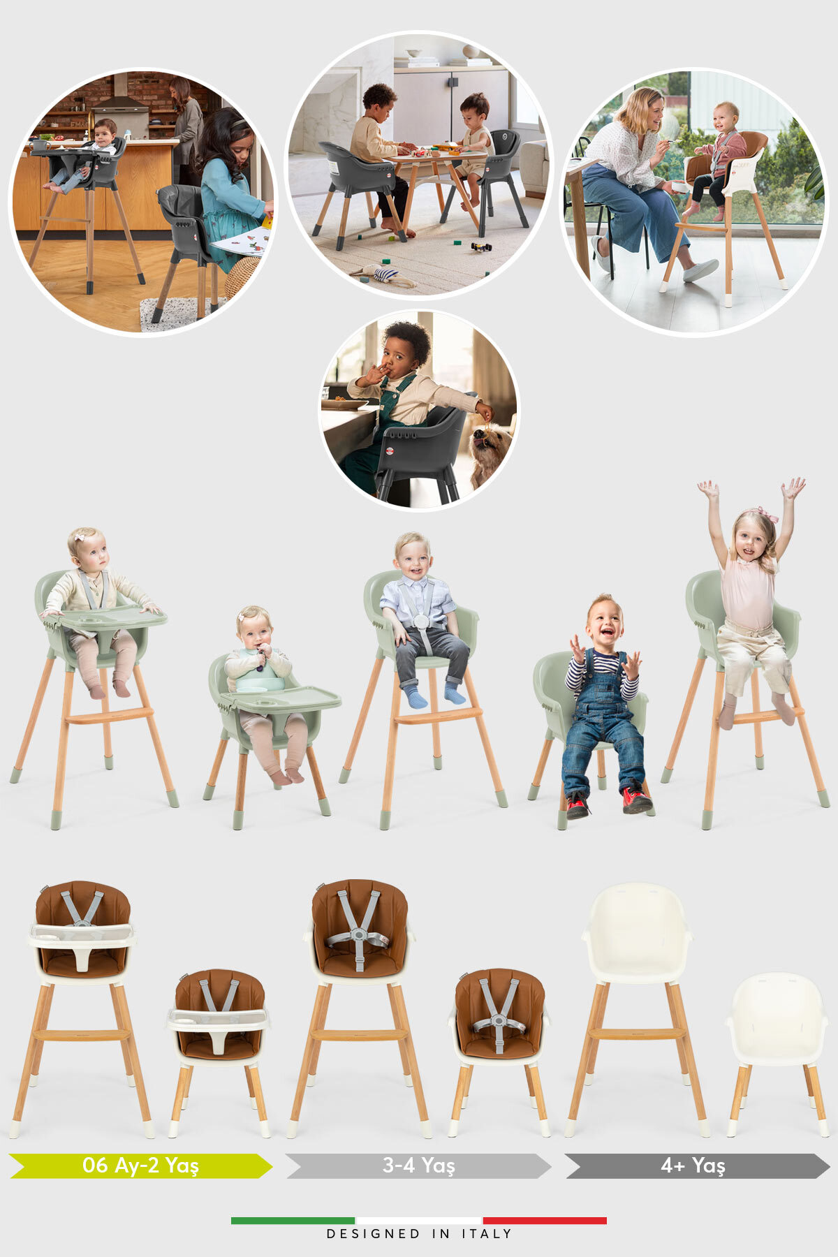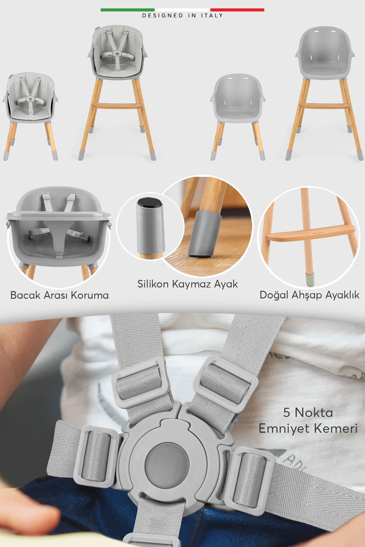 Verona 4in1 Ahşap Bebek Mama Sandalyesi ve Mama Oturağı Deri Pedli Ekru
