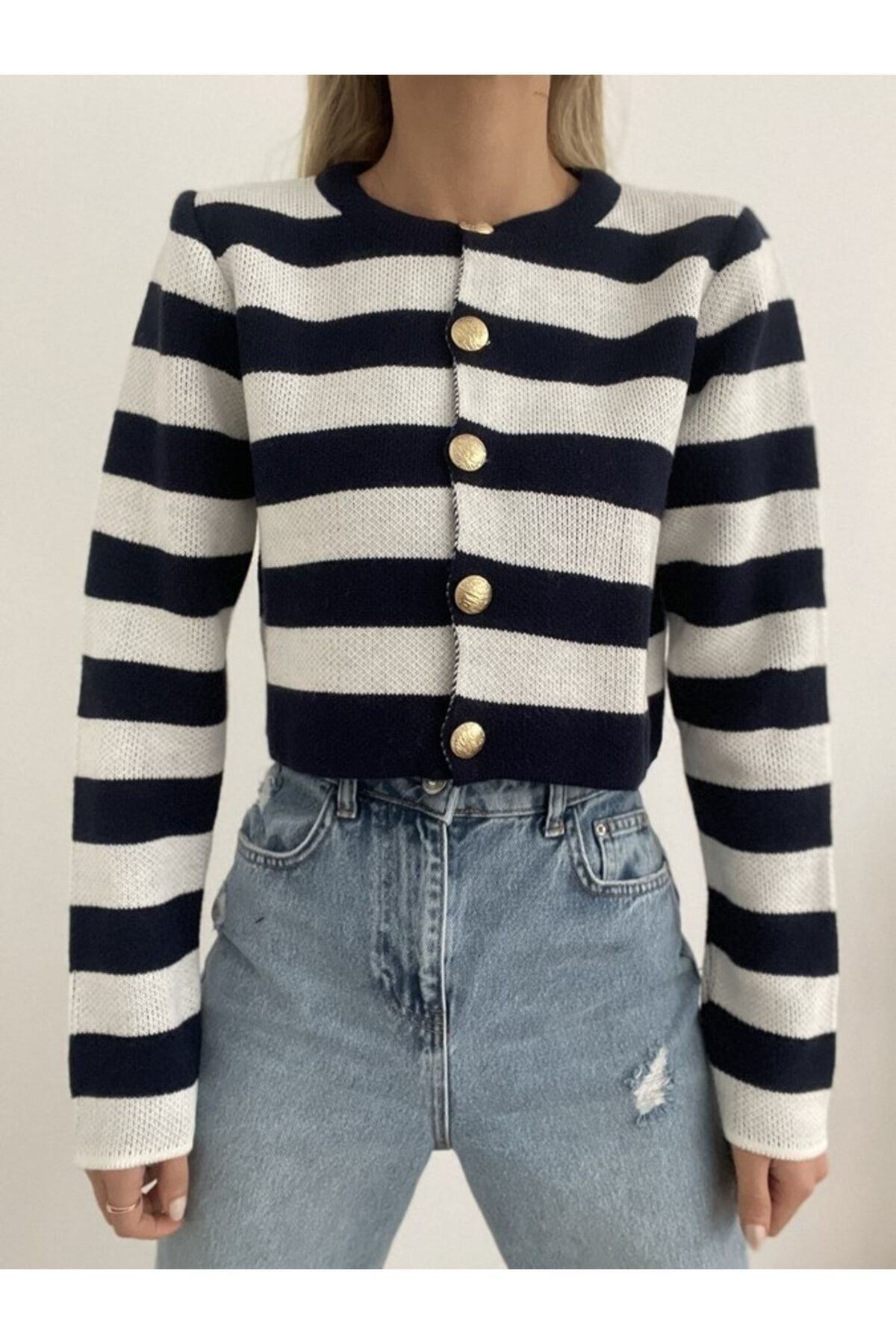 - Siyah beyaz çizgili deseniyle zamansız bir tarz sunar.