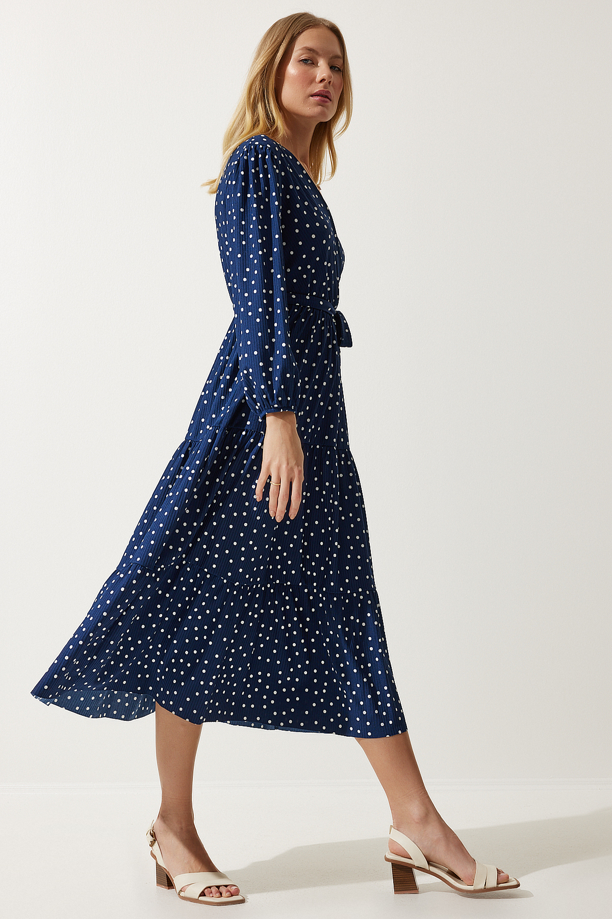 Göz alıcı puantiyeli deseniyle klasik ve zamansız bir tarz yaratır, her ortamda dikkat çekici bir stil oluşturmanızı sağlar