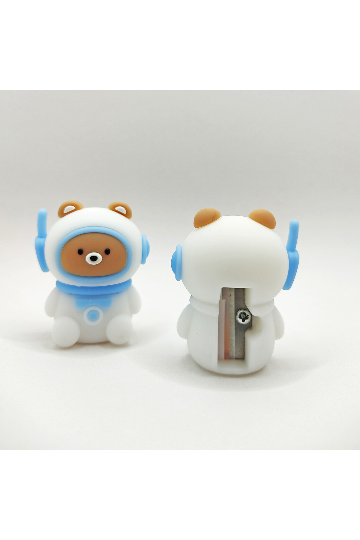 Sevimli Astranot Ayıcık Silgili Kalemtraş 3D Şekilli Silikon Kalemtraş - Mavi