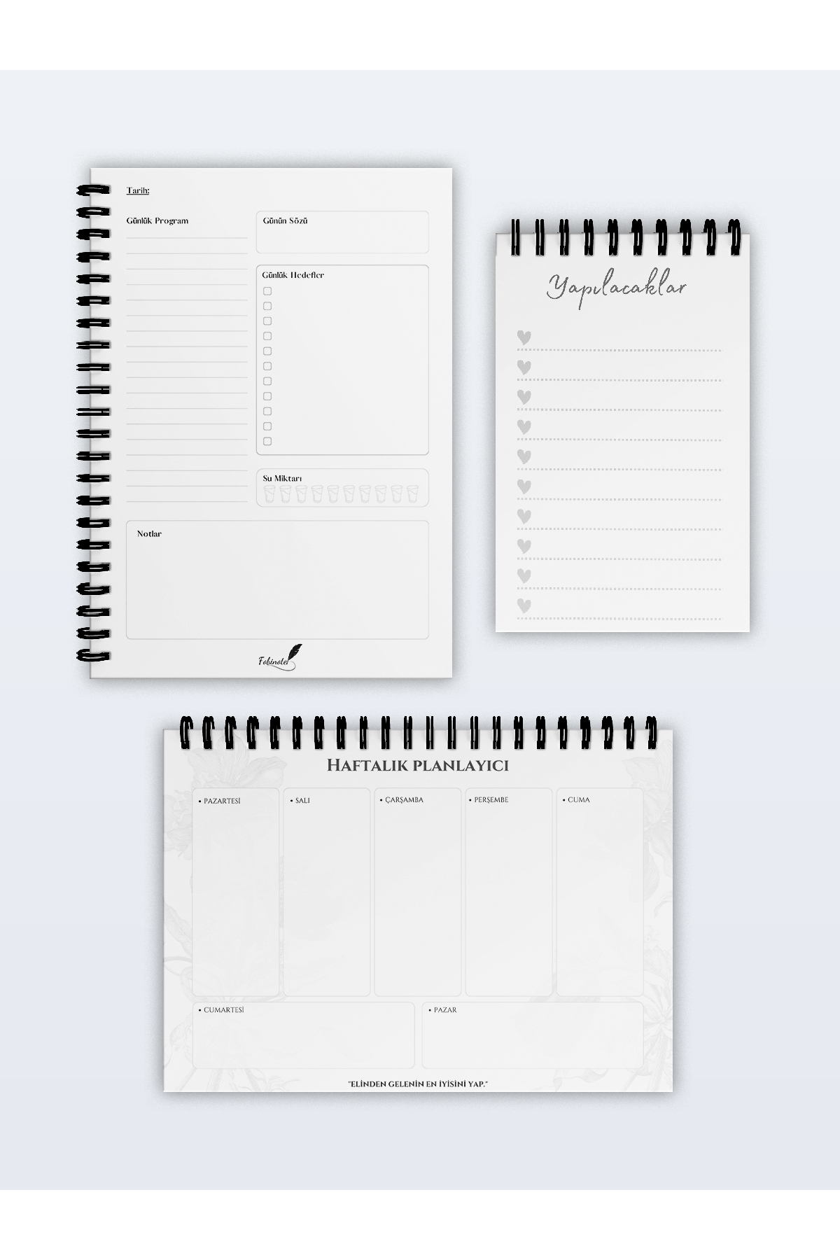 Konsept defterler kategorisinde yer alan bu set, günlük ve haftalık planlama ihtiyaçlarınıza özel olarak tasarlanmıştır