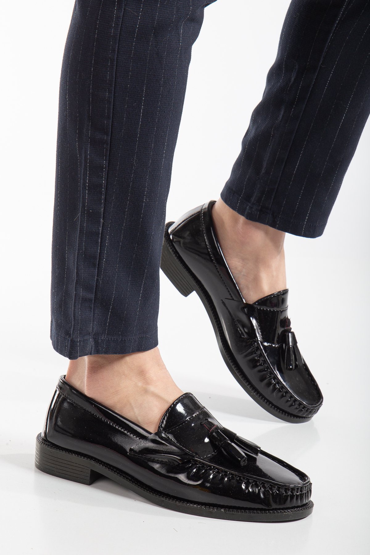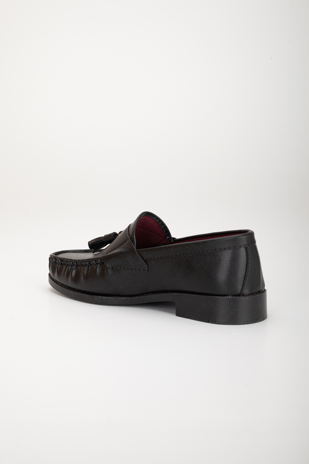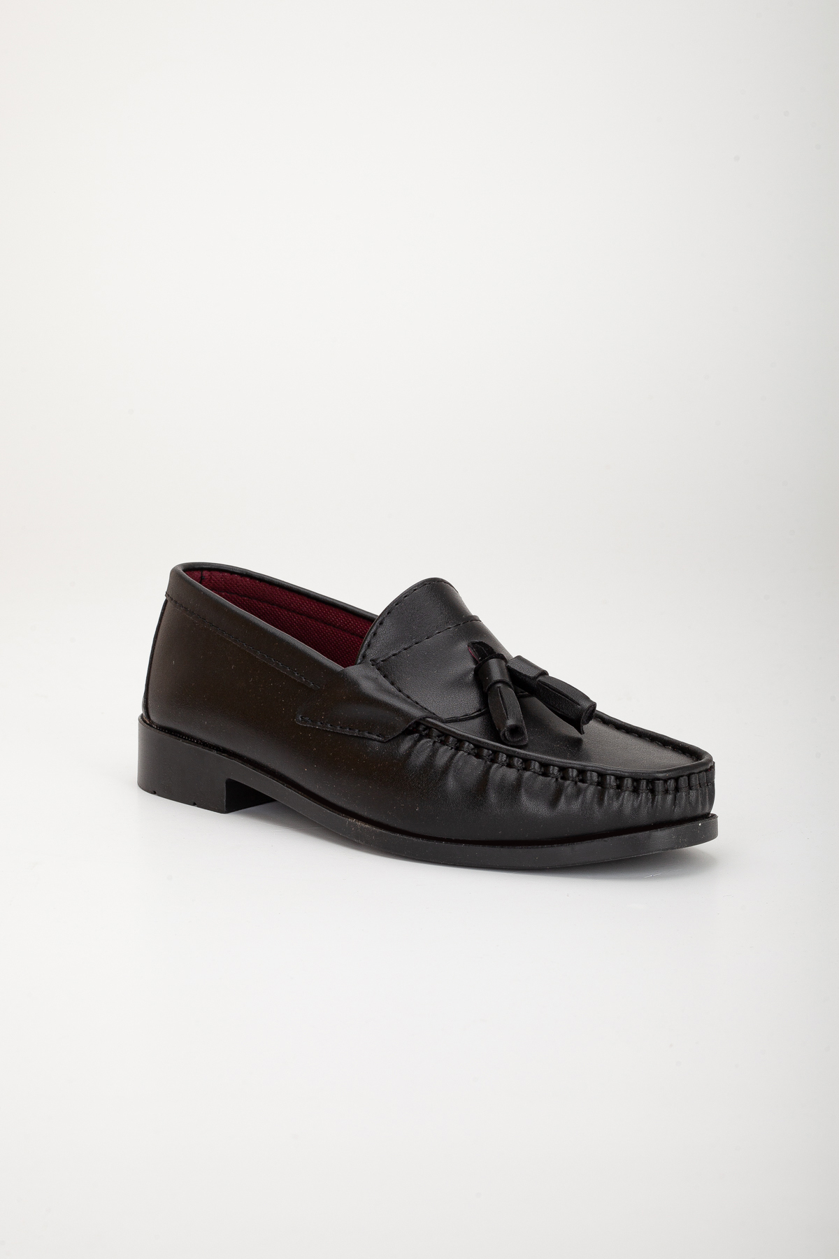 Klasik tasarımıyla her ortama uyum sağlayan siyah corcik püsküllü unisex günlük ayakkabı, hem erkek hem de kadın kullanıcılar için ideal bir seçenektir