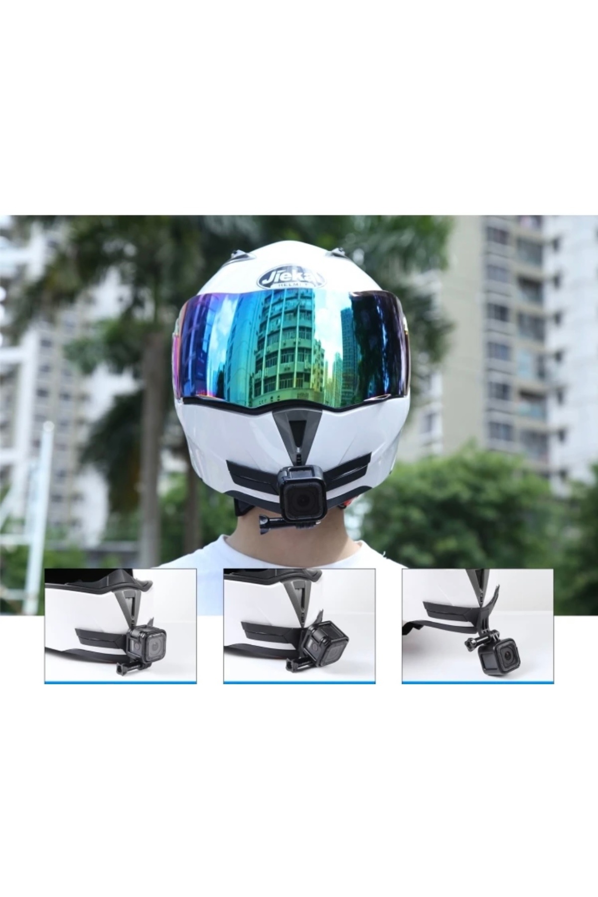 Motosiklet Kask Çene Yapıştırıcılı Telefon Ve AksiyonKamera Tutucu Full Aparat Aksiyon kameraları ve telefonlar için tasarlanmıştır.