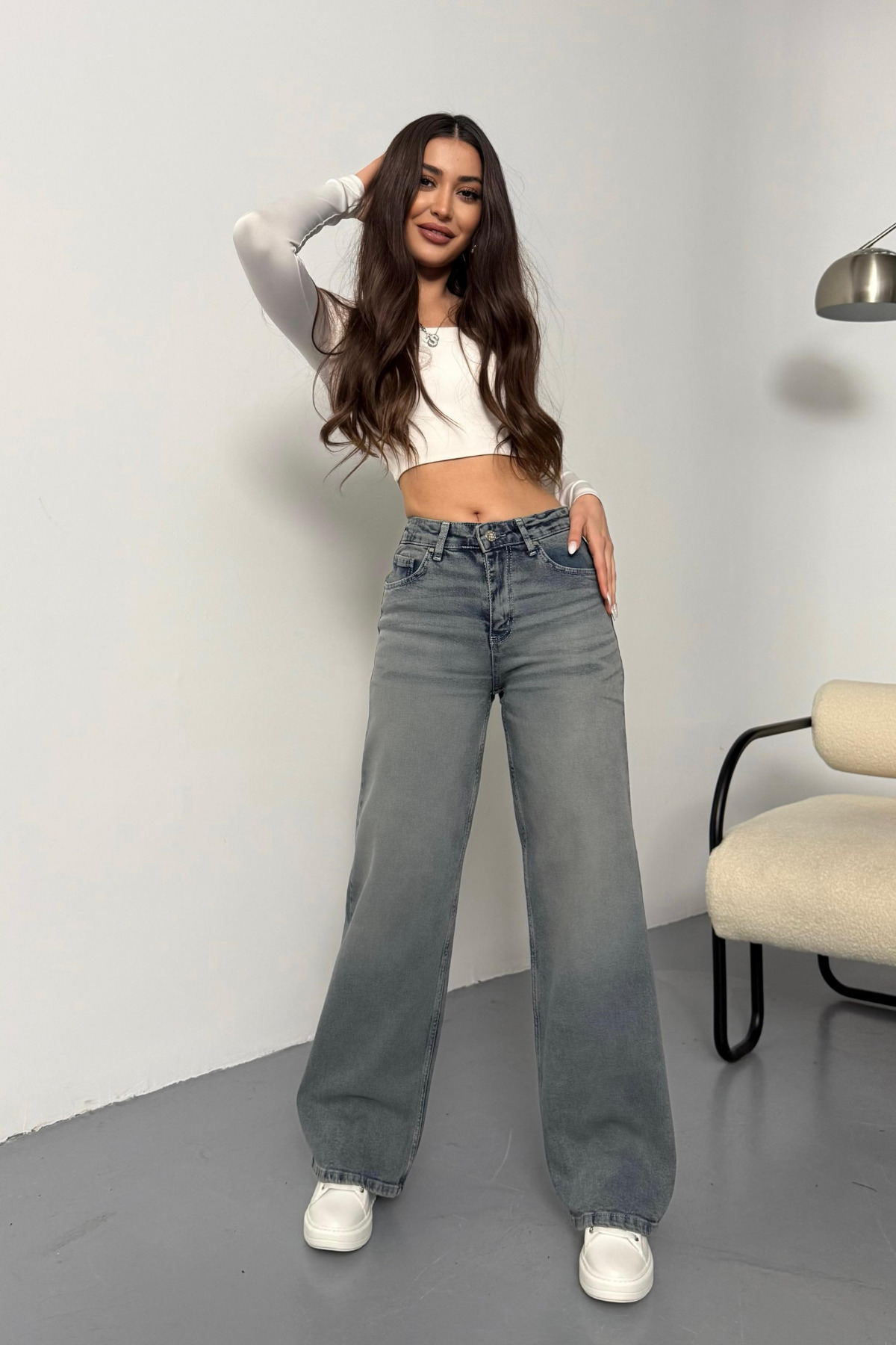 - Rahat kesimiyle günlük kullanım için ideal olan bu yüksek bel wide leg jeans, retro esintili tasarımıyla dikkat çeker.