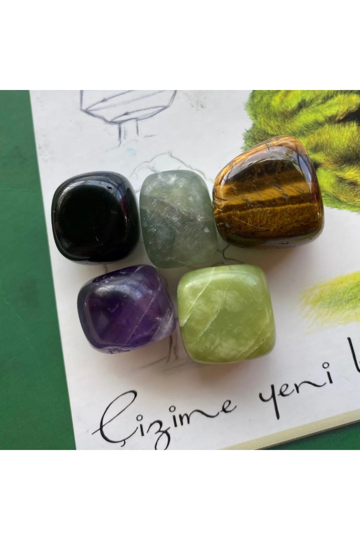 Her sette farklı renk ve desende doğal taşlar bulunur, böylece her öğrenci kendine özgü bir stil oluşturabilir.