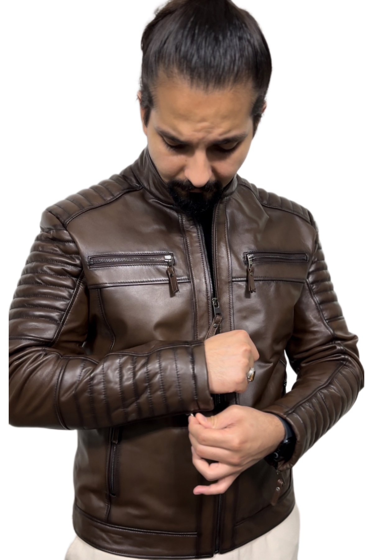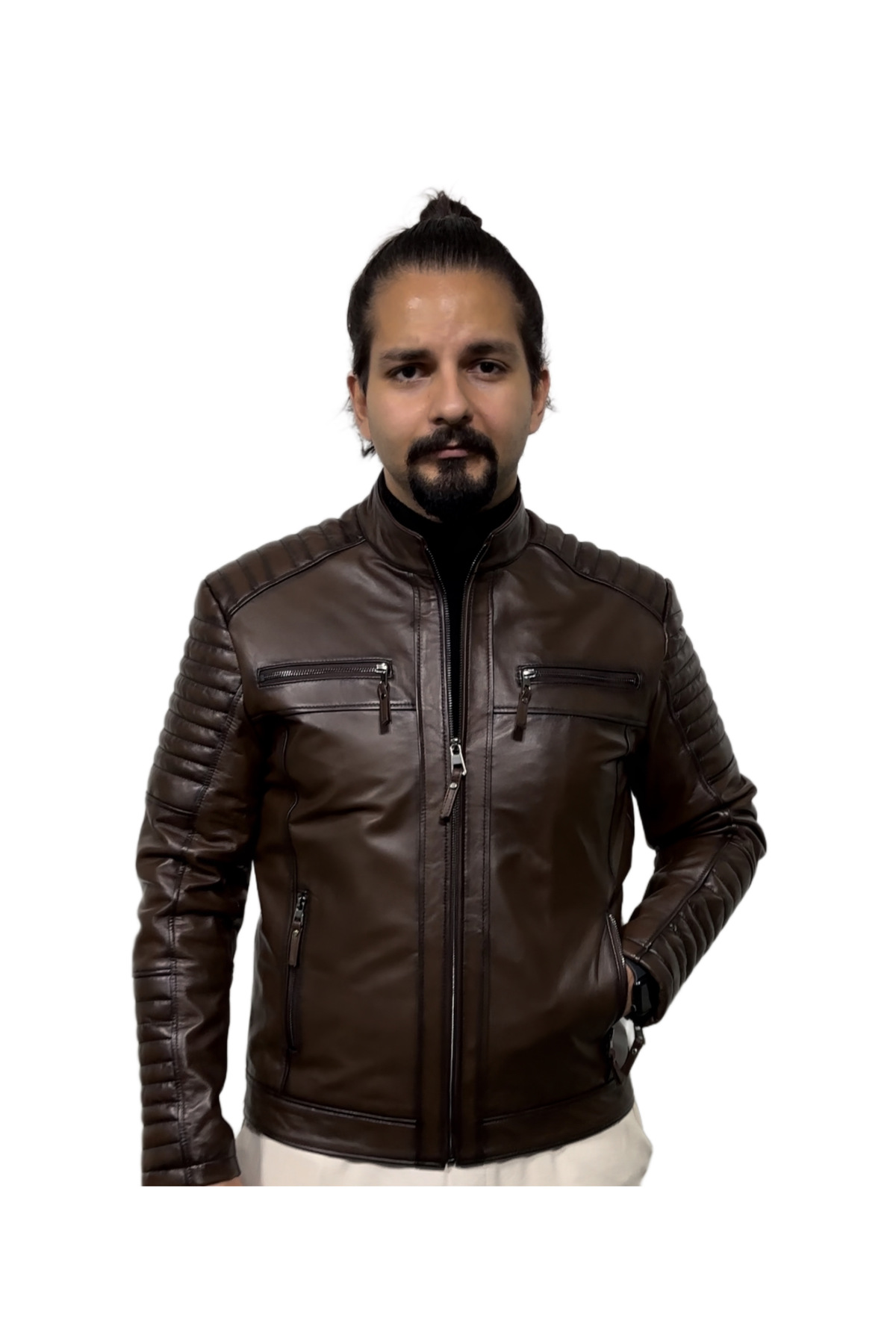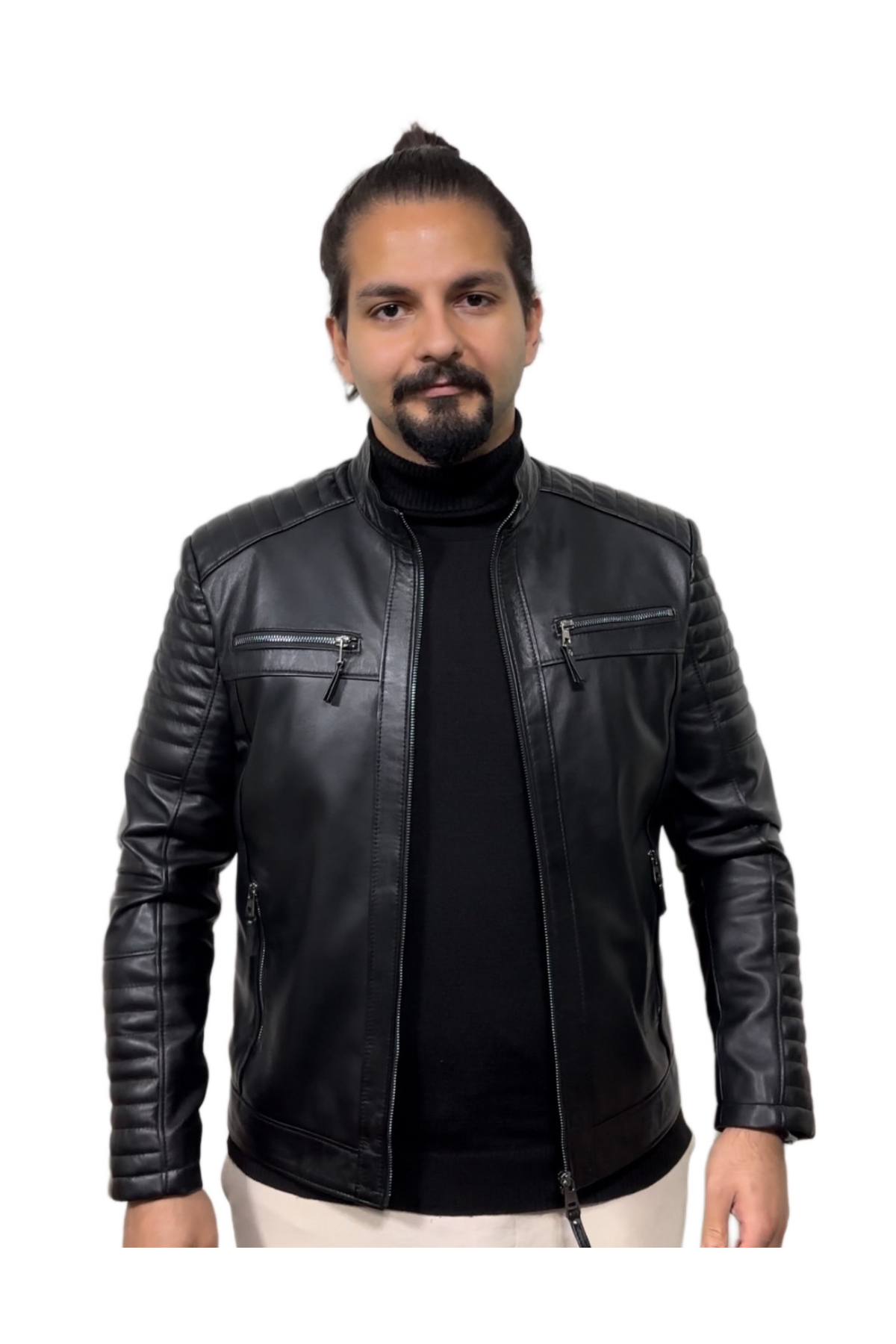 Biker tarzı tasarımıyla dikkat çeken bu mont, motorcu ruhunu yansıtan siluetiyle öne çıkar