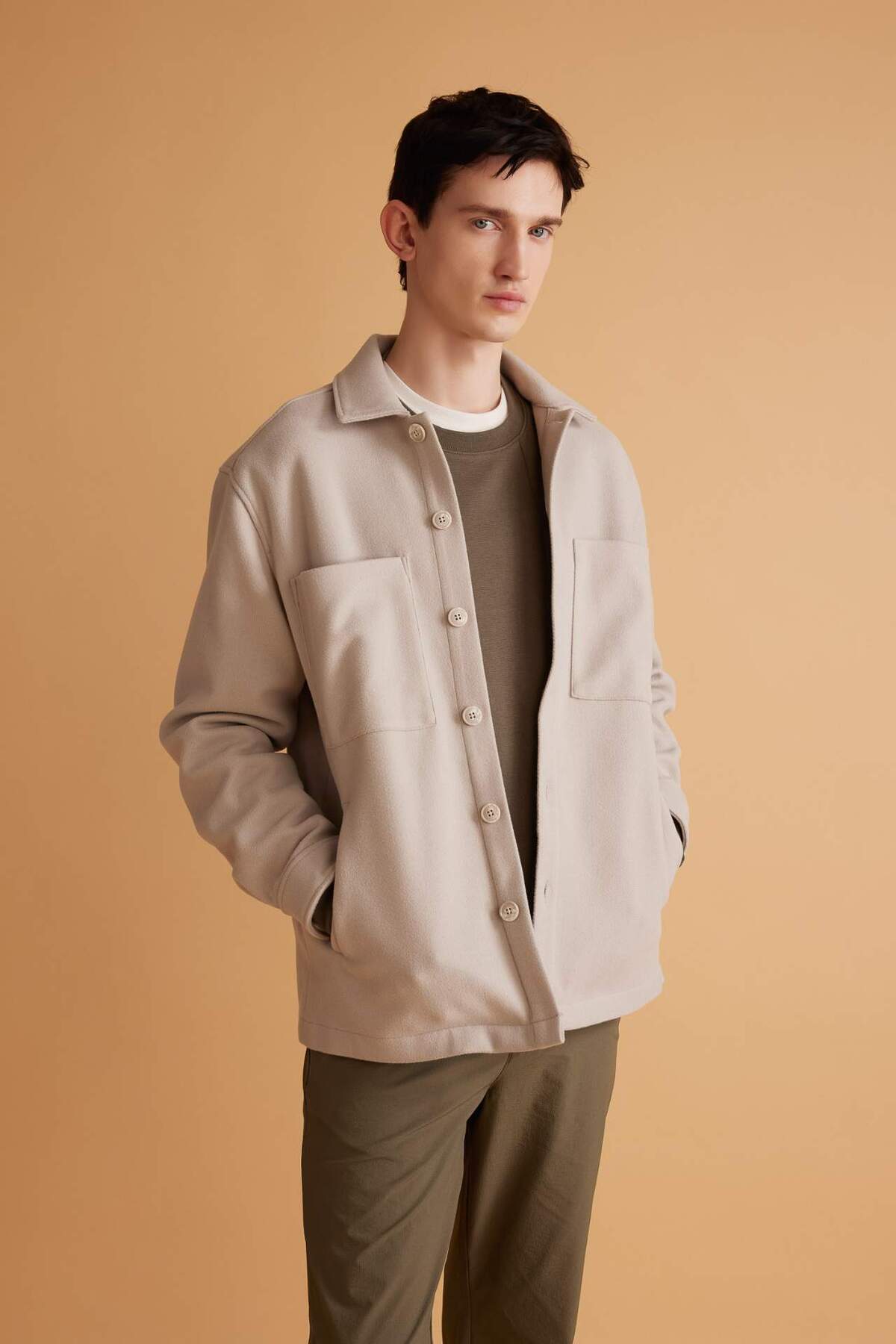 Rahat kesimli polo yaka yün görünümlü gömlek ceketi, şıklığı ve konforu bir arada sunar.