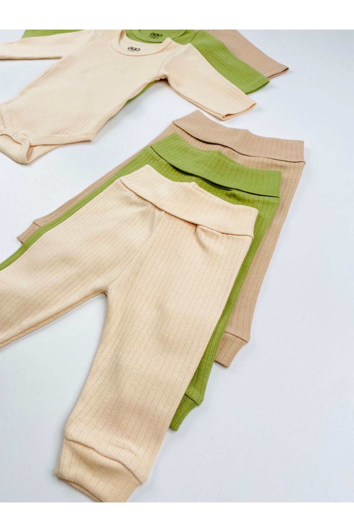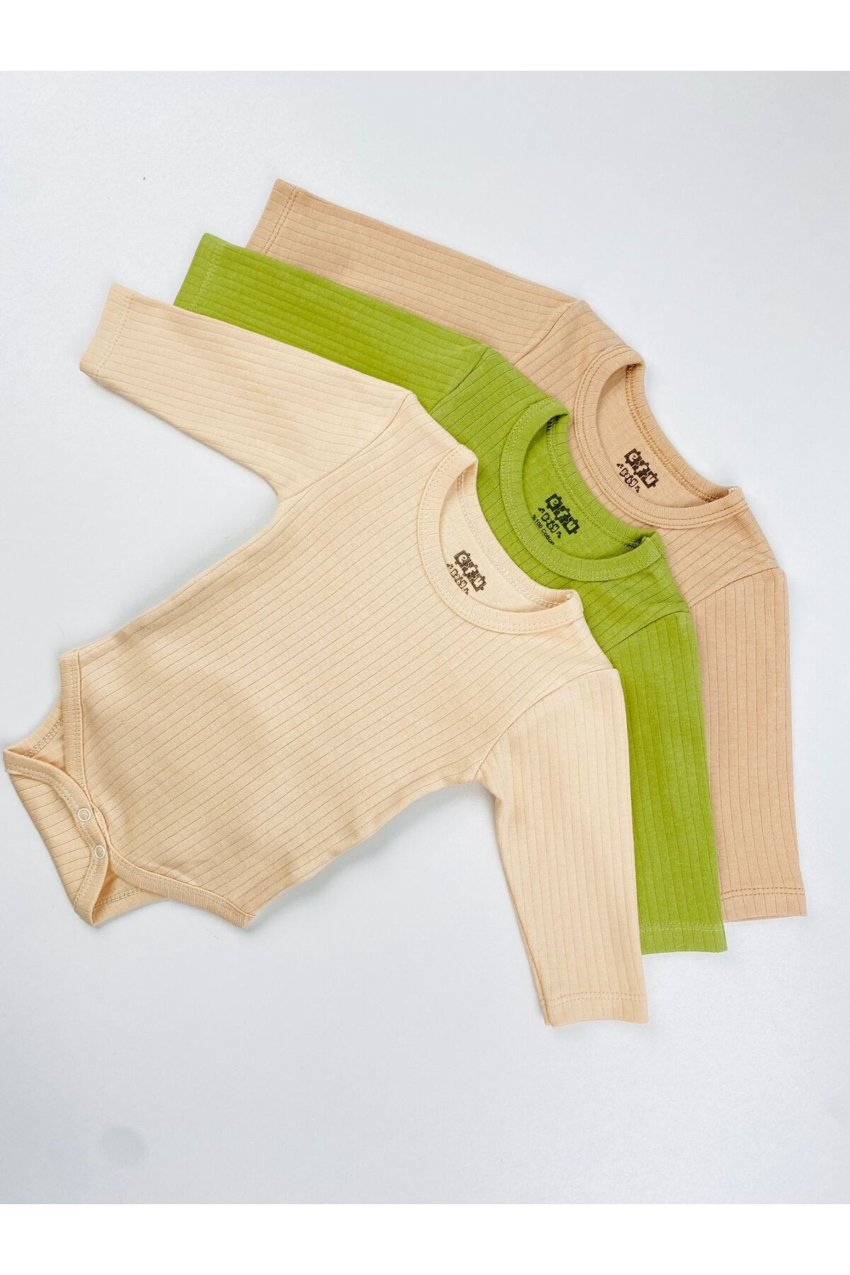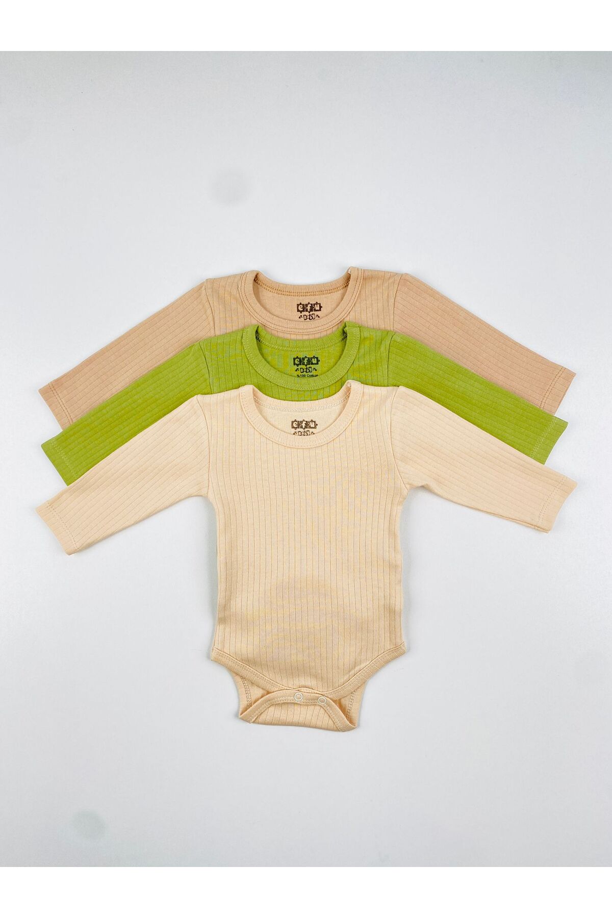 Standart boy ve çizgili desenleriyle bebeklerinize şıklık katan 3'lü pamuklu zıbın takımı