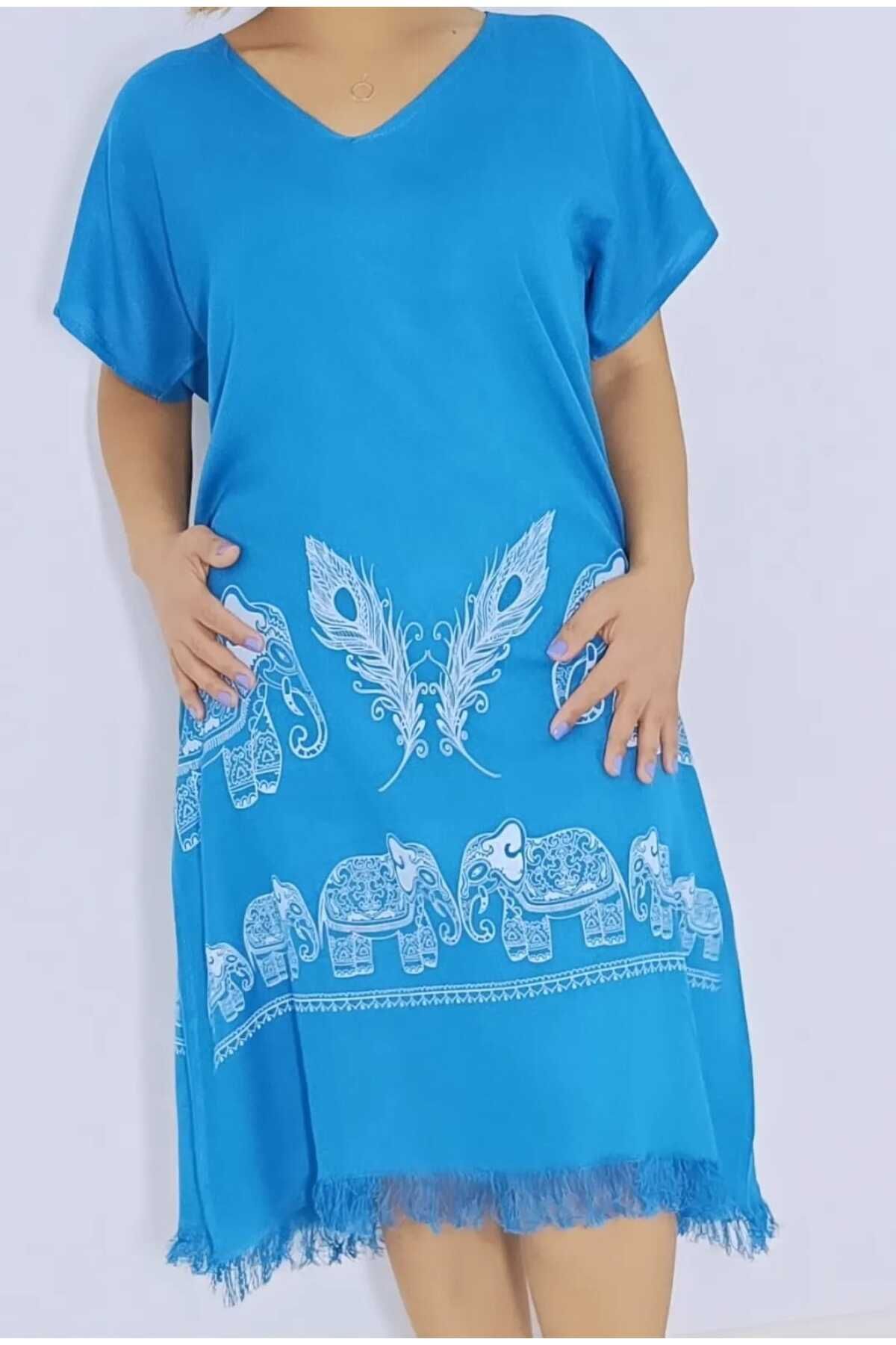 Beachwear olarak tasarlanmış olup, plaj modasına uygun baskılı deseniyle dikkat çeker