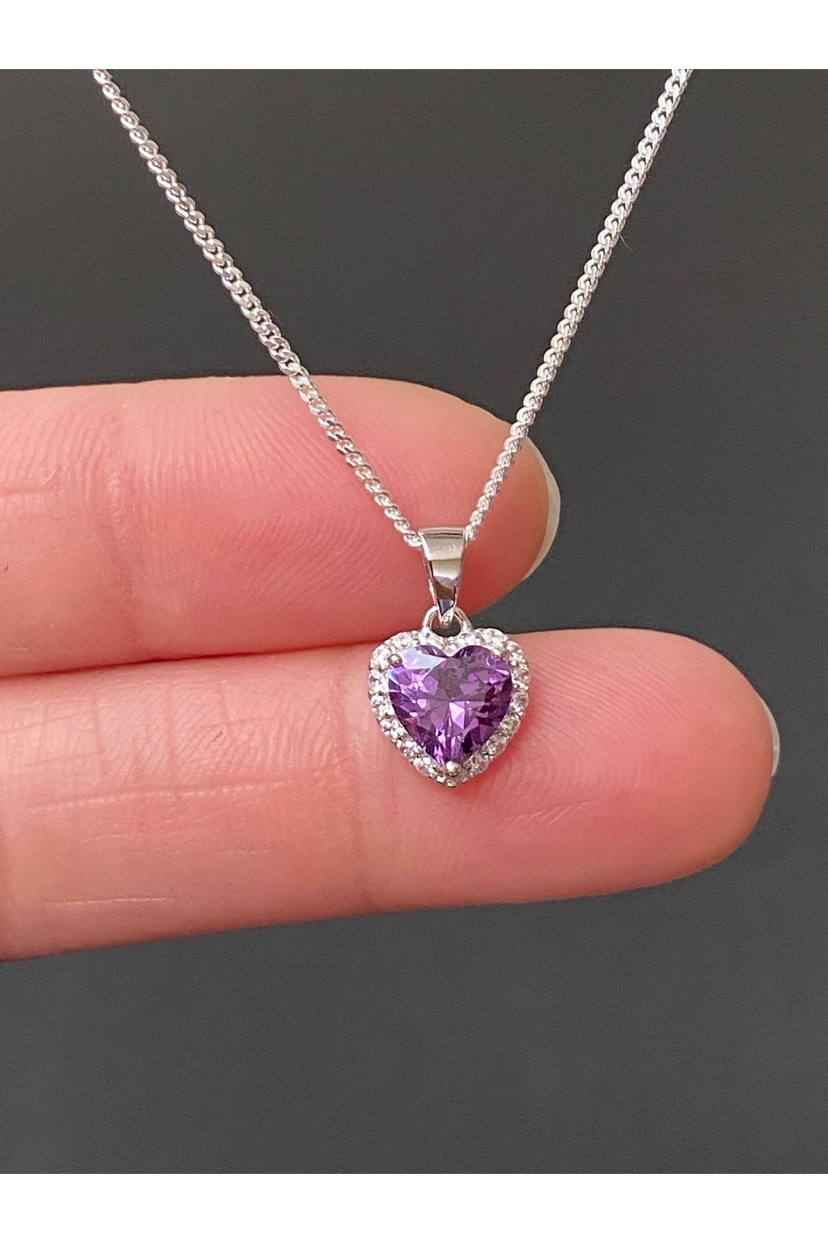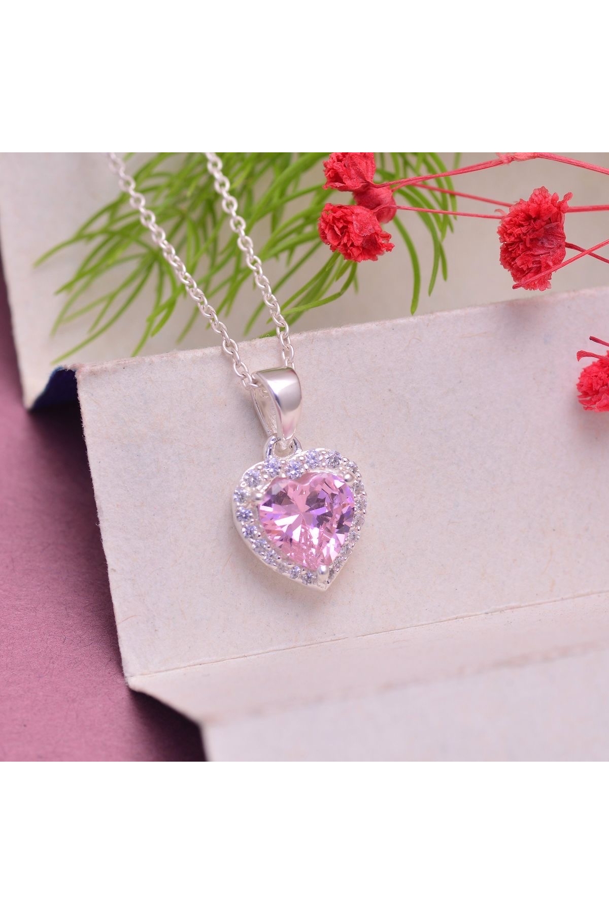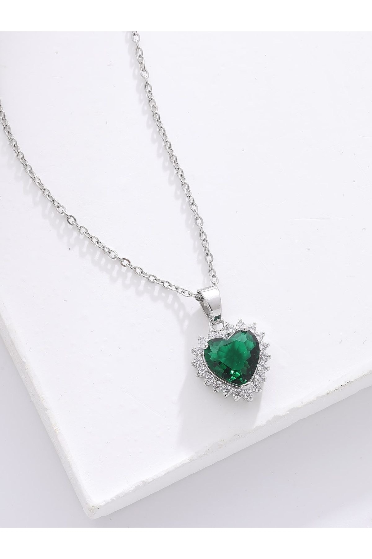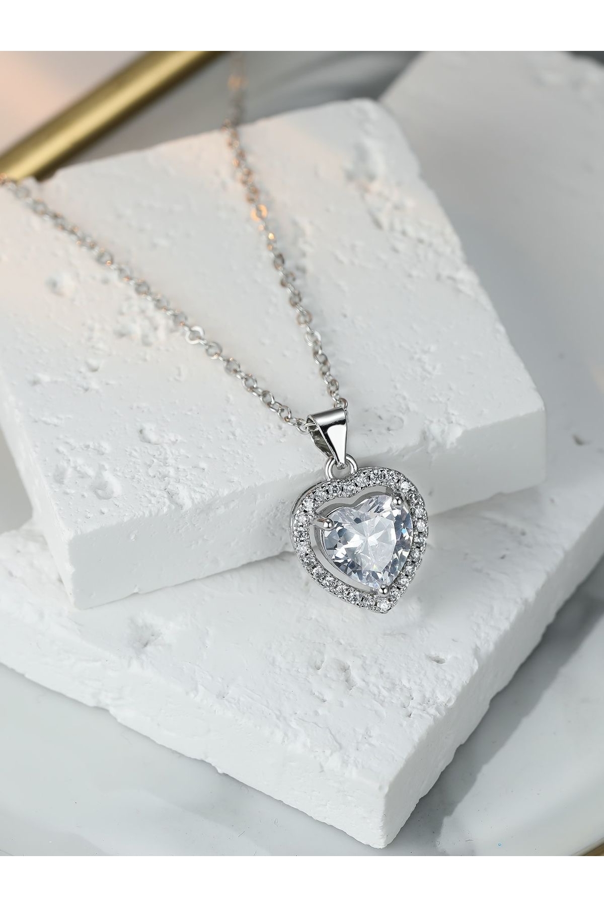 Gümüş Zirkon Taşlı Kalp Model Çelik Kolye