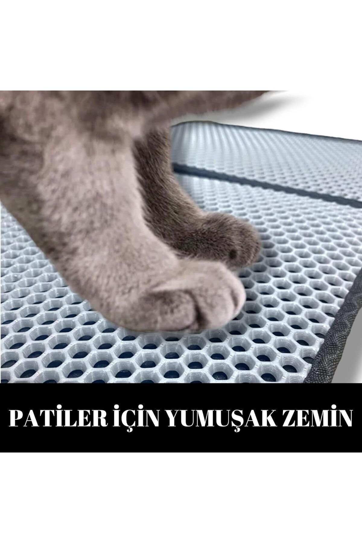 Muhteşem Uyum: Kedi çöp tutma matı, hassas patilerde rahatlık sağlar.