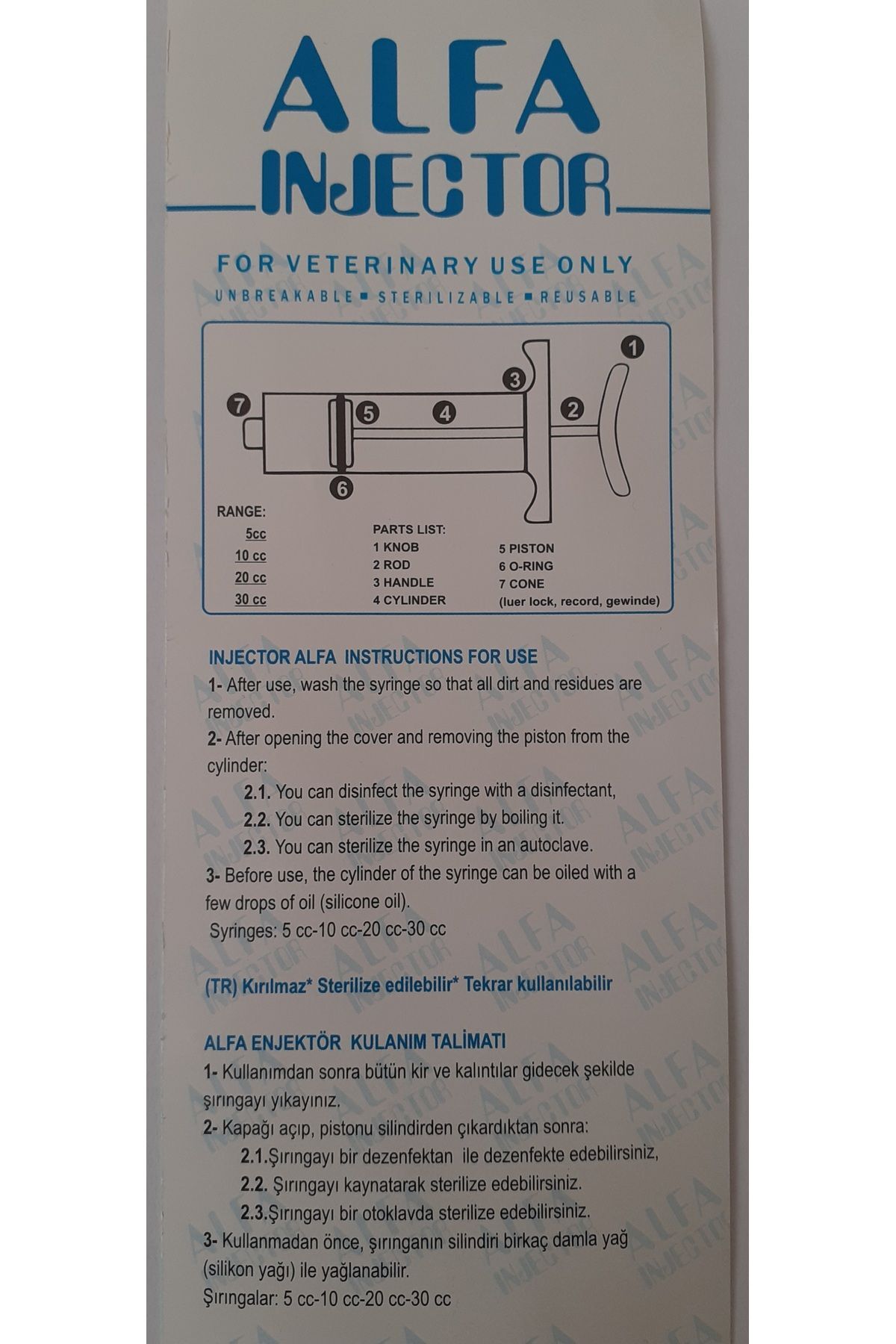 10 cc kapasiteli bu enjektör, küçük ve orta büyüklükteki hayvanlar için idealdir