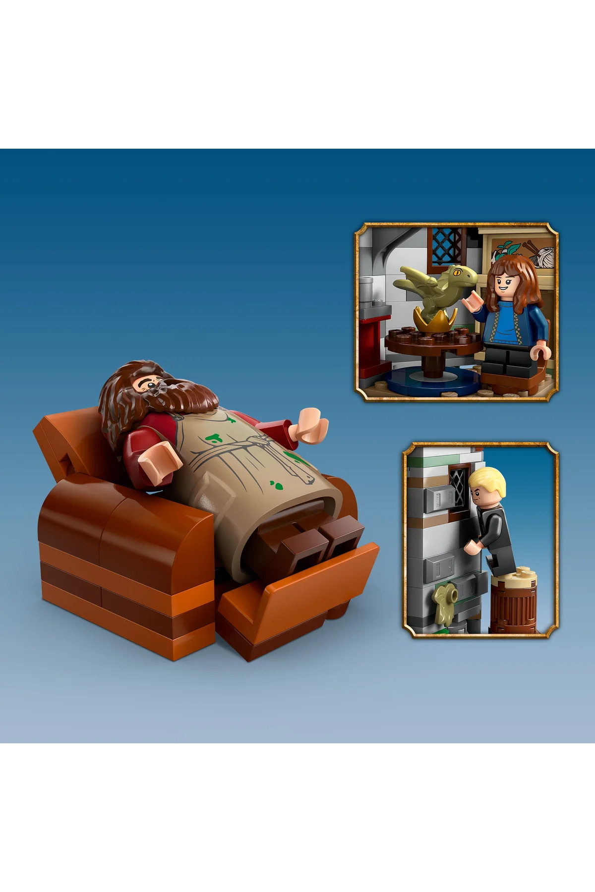 Harry Potter™, Hermione Granger™ ve Ron Weasley™ ile Hagrid’in kulübesine beklenmedik bir ziyarette bulunun. Dışarıdaki köpek kulübesinde Rubeus Hagrid’in evcil hayvanı Fang ile tanışın. Hagrid™’in kocaman koltuğunda dinlendiği kulübeye girin. Hagrid’in ejderha yumurtası masada ve çatlamak üzere. Peki Hagrid, Harry ve arkadaşlarını pencereden gözetleyen kim?