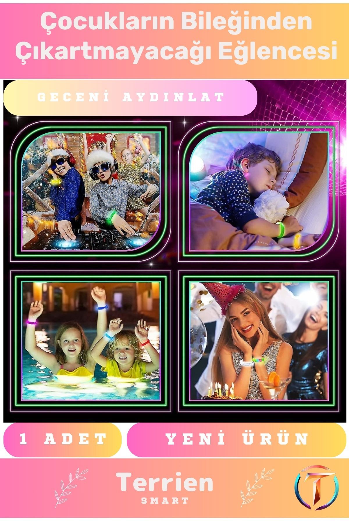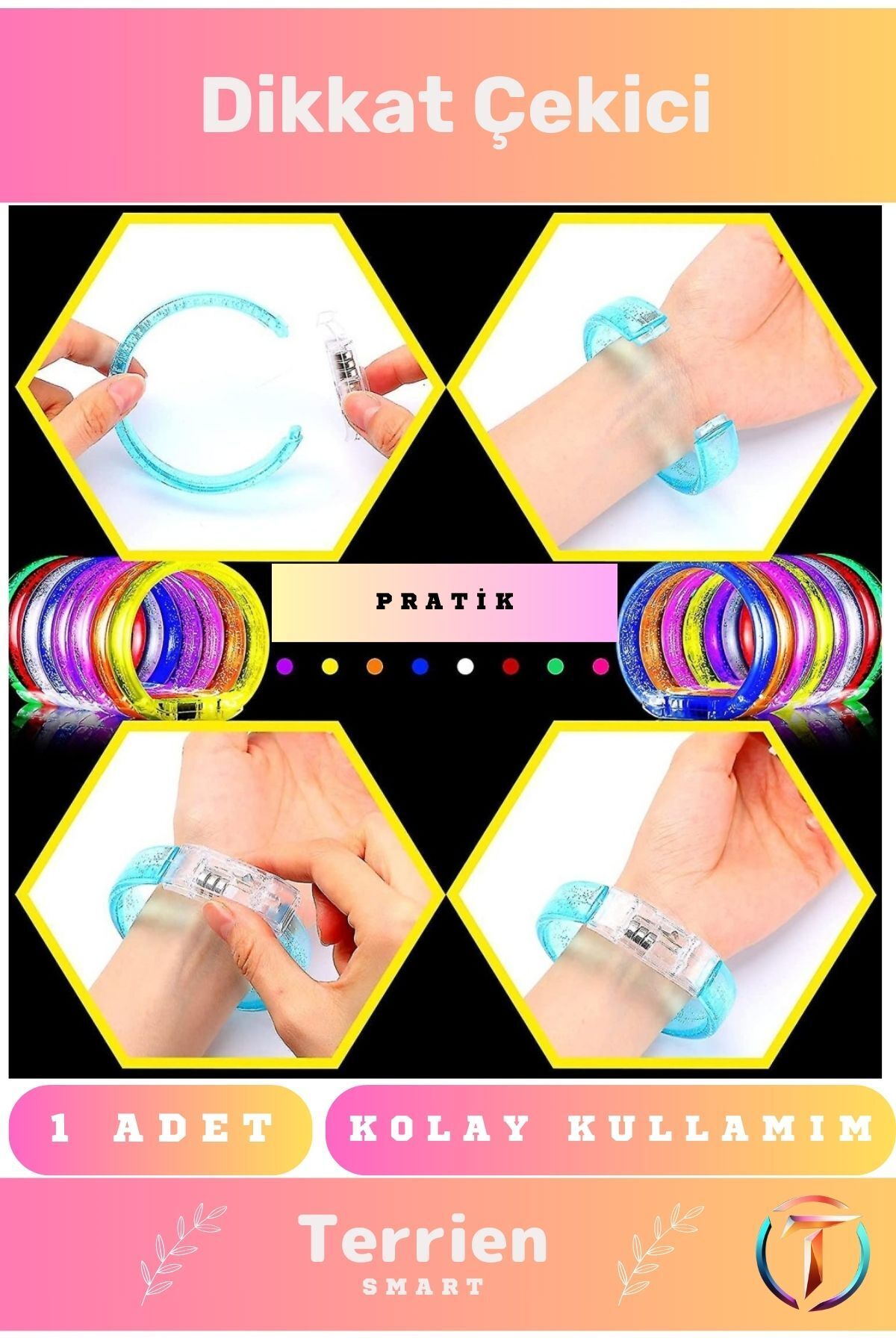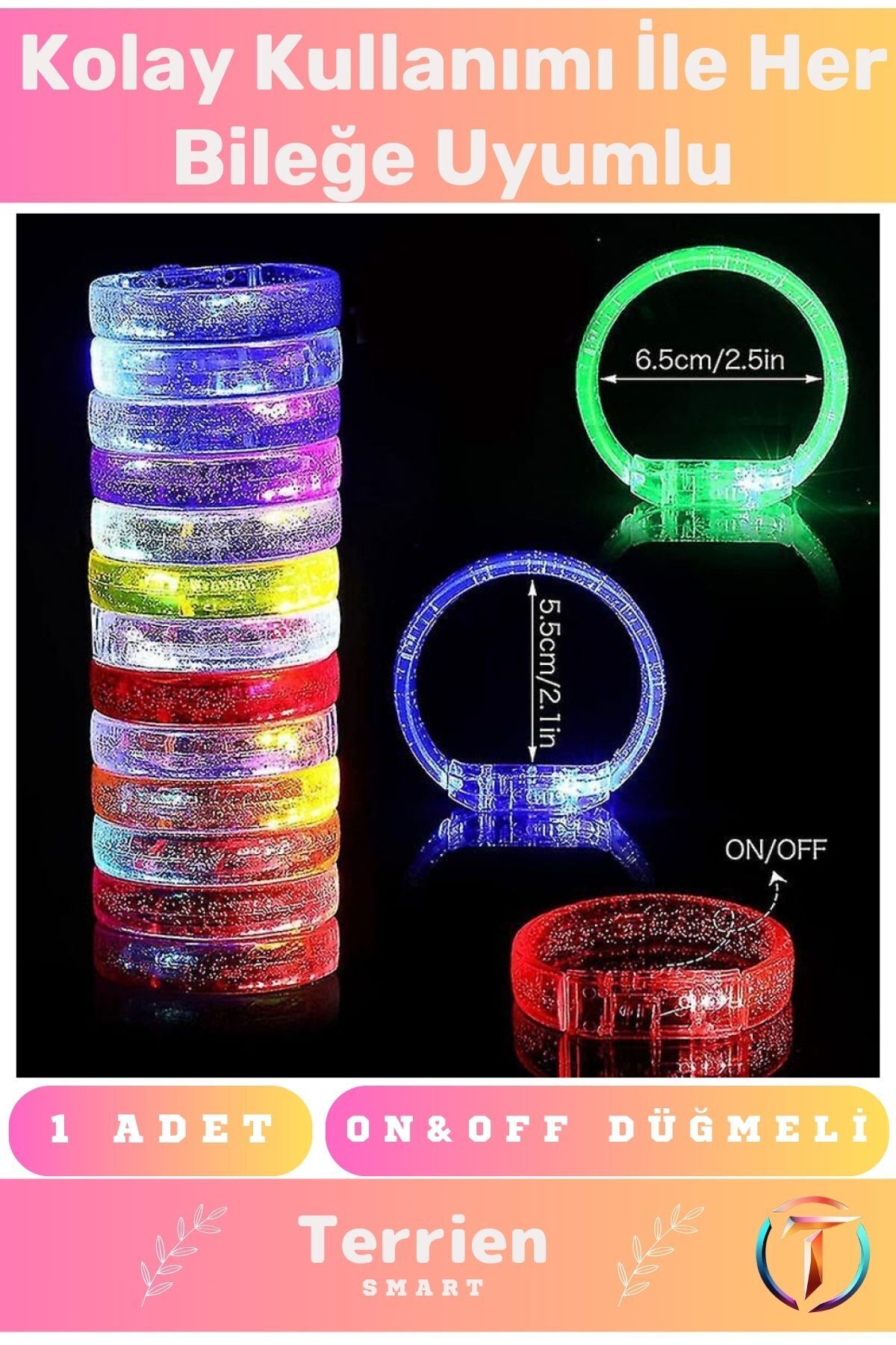 KaliteliLed Işıklı Pilli Işıklı Bileklik Işıklı Bilezik Karışık Renk 1 Adet